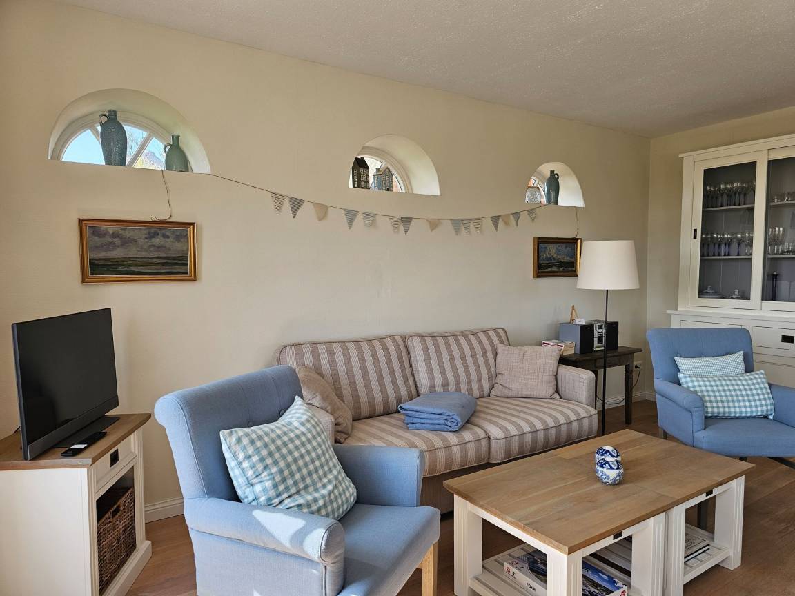Die Wohnung befindet sich im Erdgeschoß und verfügt über eine Süd-Terrasse mit Strandkorb und Blick ins Grüne. Im Wohnbereich gibt es eine voll ausgestattete Küche, eine gemütliche Couch, ein Duschbad und zwei Schlafzimmer. Zur Wohnung gehört ein PKW-Stellplatz, Ihre Fahrräder können Sie direkt am Haus ab- oder unterstellen.