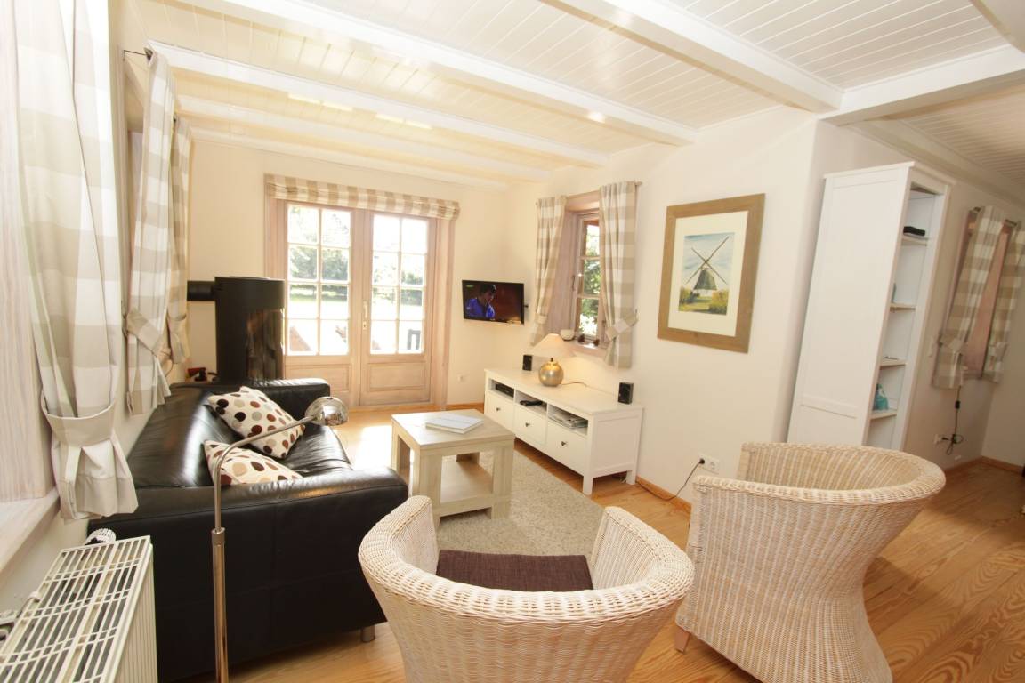 Die Ausstattung des Hauses umfasst einen gemütlichen Kaminofen, der an kühleren Tagen für wohlige Wärme sorgt. Eine Terrasse lädt zum Verweilen im Freien ein und auch Hunde sind hier herzlich willkommen. Der Garten bietet zusätzlich Raum für Erholung und Entspannung.