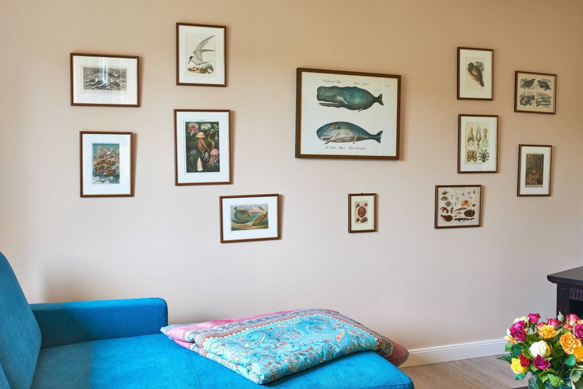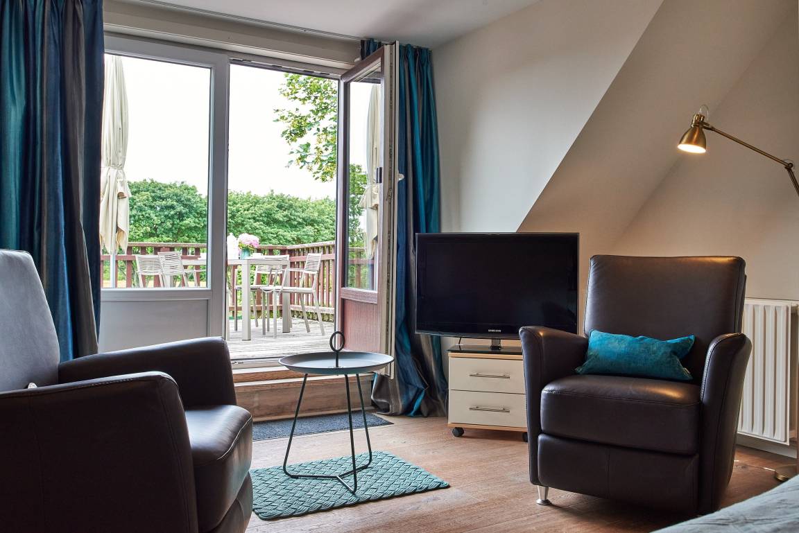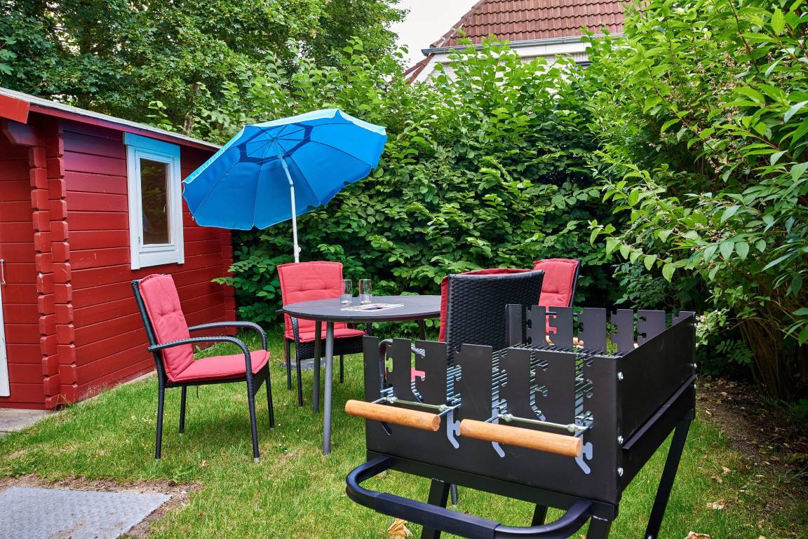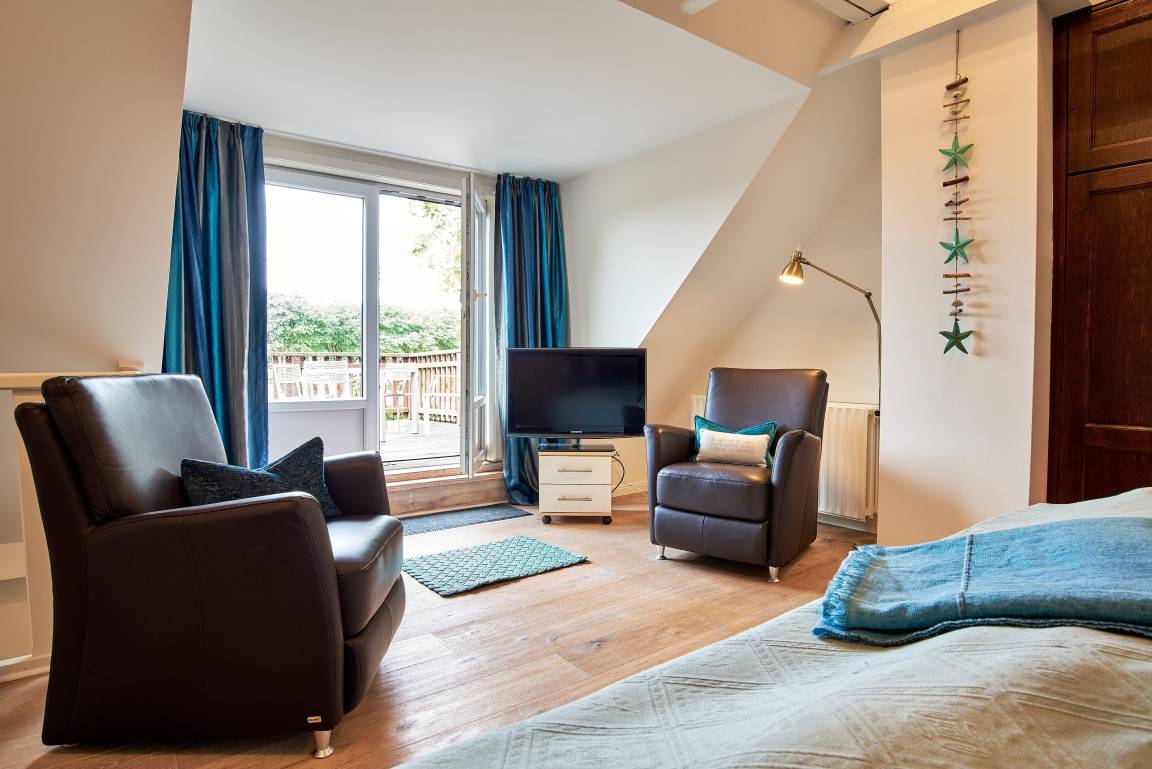 Die übrigen Räume befinden sich im Erdgeschoss der Wohnung und sind, ebenso wie das Schlafzimmer, farblich harmonisch aufeinander abgestimmt und mit hochwertigen Möbeln ausgestattet. Genießen Sie Ihre Urlaubstage und Relaxen Sie im behaglich eingerichteten Wohnzimmer mit internetfähigem TV und Bluetooth-fähiger Anlage mit CD und Radio. Hier befindet sich ein ausziehbares Schlafsofa mit einer Liegefläche von 140x200 cm für einen dritten Gast oder als Ausweichmöglichkeit. In der seitlichen Bettenbox sind Decken und Kissen schnell verstaut, um in den Tag zu starten. Probieren Sie sich an friesischen Rezepten, denn in der voll ausgestatteten, offenen Küche macht Kochen richtig Freude. Das wunderschöne Bad mit riesigem Spiegel, Handtuchheizkörper und hochwertiger Dusche lässt Sie gut in den Tag starten. Am Haus befindet sich ein PKW-Stellplatz und im Garten eine weitere Sitzecke.