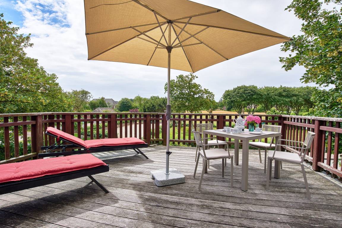 In idyllischen Friesendörfchen Nieblum liegt unser charmantes Domizil Wildrose mit einer schönen Dachterrasse und einem kleinen Garten.