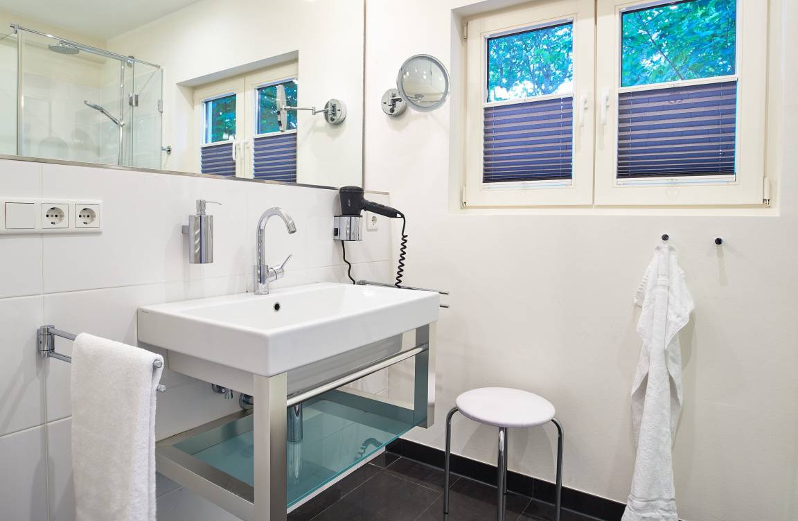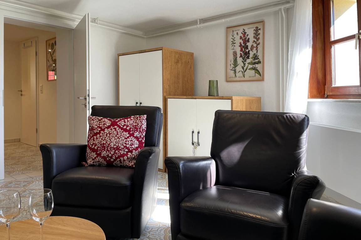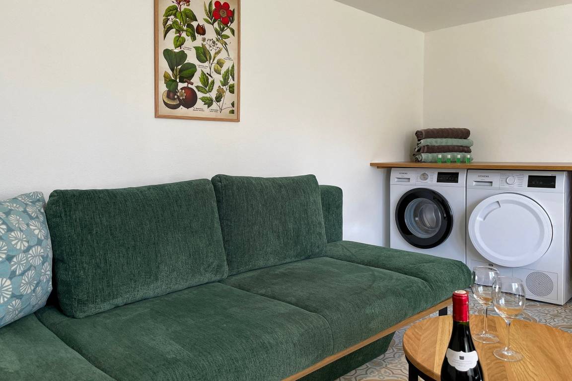 Die Wildrose bietet Gästen einen zusätzlichen Aufenthaltsraum im Keller, der von außen begehbar ist. Hier steht Ihnen ein vollwertiges Badezimmer und eine Sauna mit Aufenthaltsraum und Sitzgruppe zur Verfügung sowie die kostenfreie Nutzung von Waschmaschine und Trockner. Diese Annehmlichkeiten erhöhen den Komfort und die Flexibilität während ihres Aufenthalts.