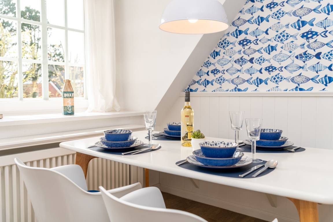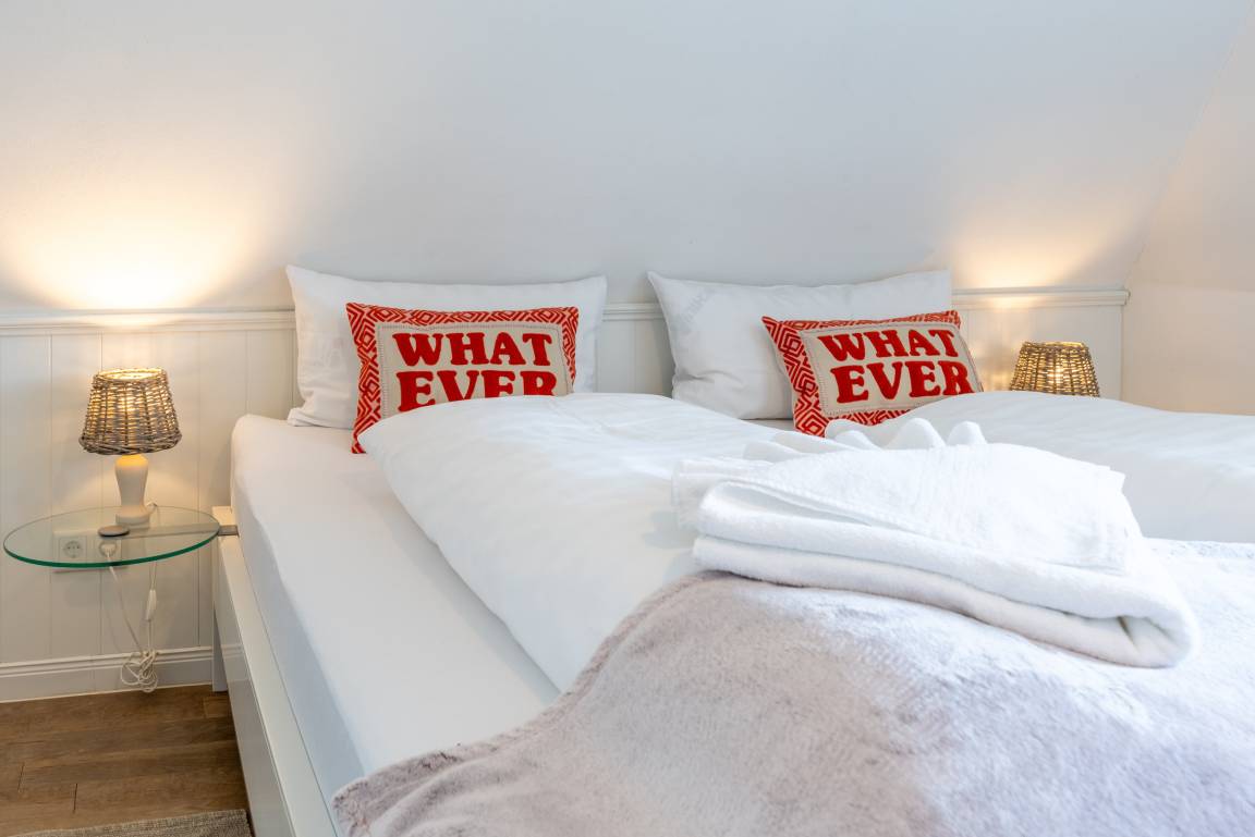 Unsere sehr hochwertig und mit viel Liebe zum Detail eingerichtete Ferienwohnung "Glückskind" befindet sich in einem schönen Reetdachhaus in Nieblum und bietet Ihnen den perfekten Rückzugsort für entspannte Urlaubstage. Genießen Sie Komfort und die ruhige, strandnahe Lage - ideal für erholungssuchende Paare, kleine Familien und Einzelpersonen (max. 3 Personen).