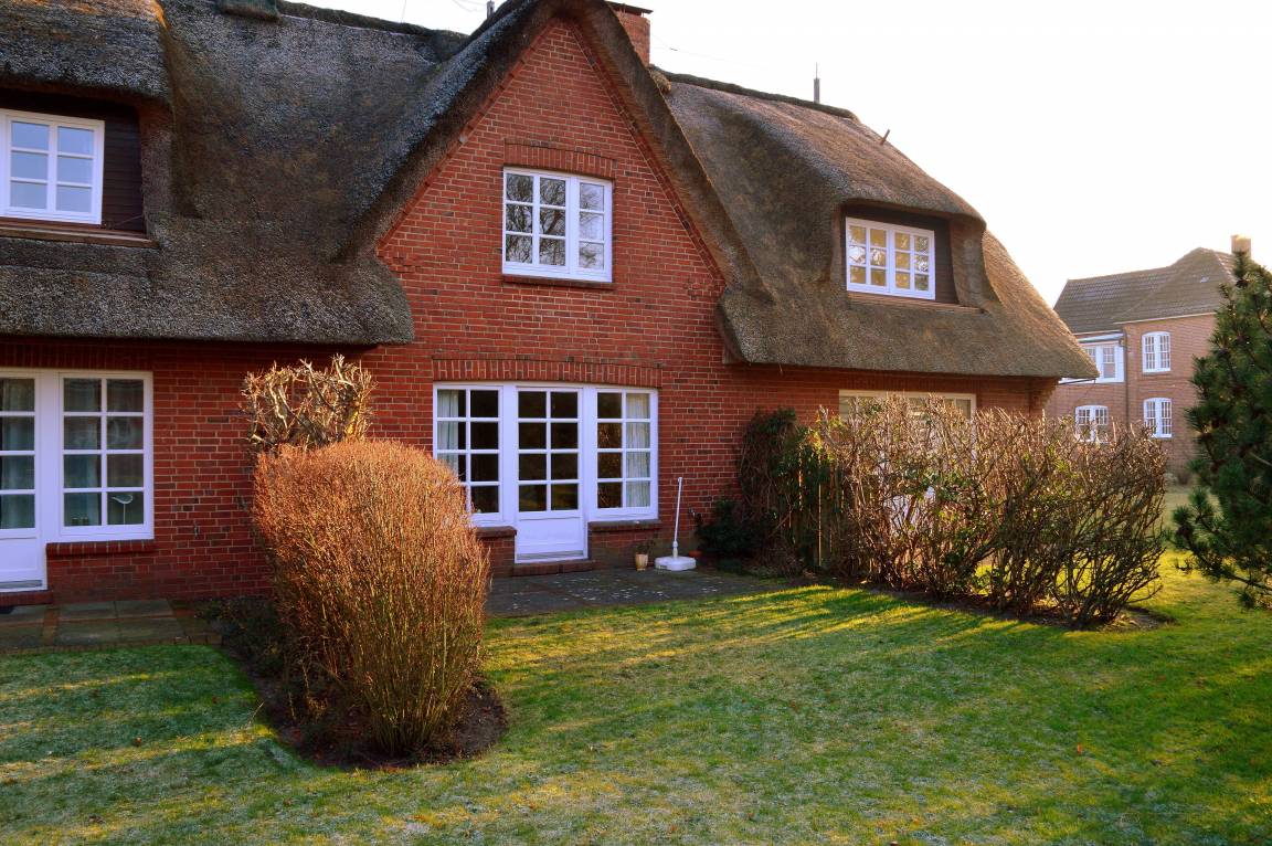 Im Dezember 2017 wurde das Haus Friesenfeuer für seine Feriengäste komplett neu ausgestattet. Auf einem sonnigen und großen Gemeinschaftsgrundstück gelegen, erstreckt sich das reedgedeckte Reihenmittelhaus über 85 Quadratmeter Wohnfläche auf zwei Etagen und bietet Platz für vier Personen plus Kleinkind. Es verfügt im Erdgeschoss über einen großzügigen und gemütlichen Wohn- und Essbereich, eine separate vollausgestattete Küche und ein geräumiges Badezimmer mit Dusche. Im Obergeschoss befindet sich ein großes Schlafzimmer mit Doppelbett, ein Kinderzimmer mit Etagenbett und ein weiteres Badezimmer mit Badewanne und kostenfrei nutzbarer Waschmaschine. Der ausgebaute Dachbereich kann als Abstellraum oder Spielzimmer für Kinder genutzt werden. Die sonnige Südwestterrasse mit zugehörigem gepflegten Garten lädt zum Verweilen ein. Ein Kfz-Stellplatz sowie eine geschützte Abstellmöglichkeit für Fahrräder befinden sich ebenfalls auf dem Grundstück.