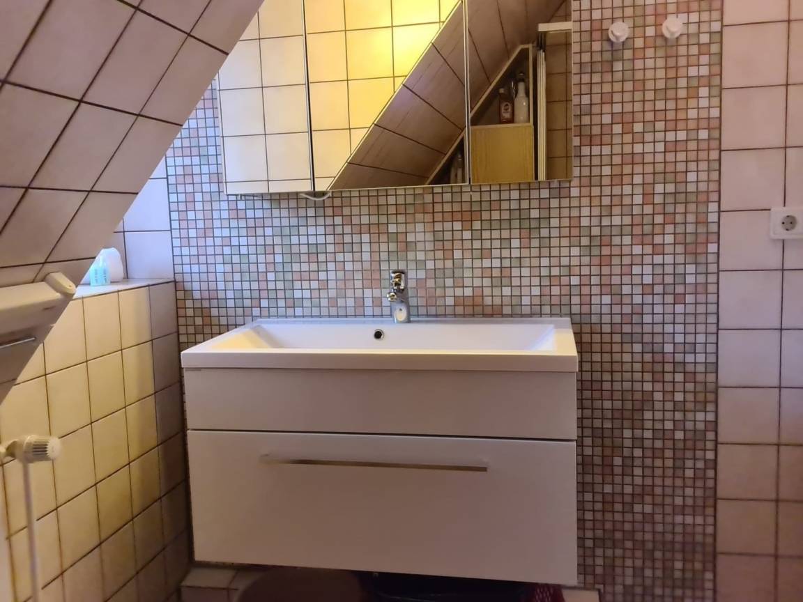 „Moin. Die Wohn/Küche war gross und hell. 4 Punkte. Die Ausstattung gefiel uns nicht so sehr. Dafür war die Kunstledersofa zu tief und der Couchtisch zu tief. Es war schon etwas beschwerlich von dem Sofa aufzustehen. Auch waren leider zu wenig Ablagen zum unterbringen persönlichen Gegenstaende wie Wäsche etc. vorhanden. Dafür geben wir 3 Punkte. Die Küche war zwar klein, aber mit allen Küchengeräten ausgestattet. 4 Punkte. Der Weg zum Doppelbett in den oberen Stockwerk, ist etwas beschwerlich. Der Weg führt über eine enge Wendeltreppe und ist etwas beschwerlich. Leider nur 2 Punkte dafür. Die Betten waren sauber und mit frischer Bettwäsche ueberzogen. 4 Punkte. Das Bad war, bedingt durch schräge Wände klein, aber Dusche, Toilette und Waschbecken waren sauber. Saubere Handtücher lagen griffbereit. 4 Punkte. Im Allgemeinen hat uns der Urlaub dort gefallen und wir wären auch bereit diese Wohnung nochmals zu mieten. Deshalb gibt es von uns 4 Punkte.“