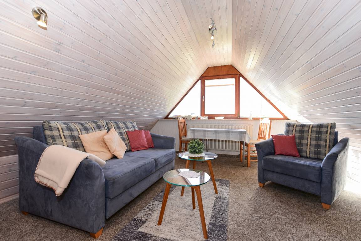 Klein, aber fein ist die Dachgeschosswohnung des Hauses, die über eine schmale Treppe erreichbar ist.