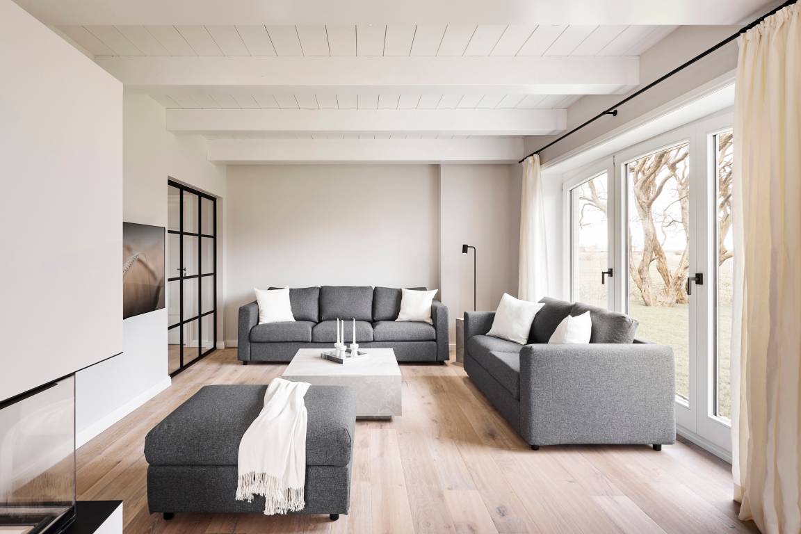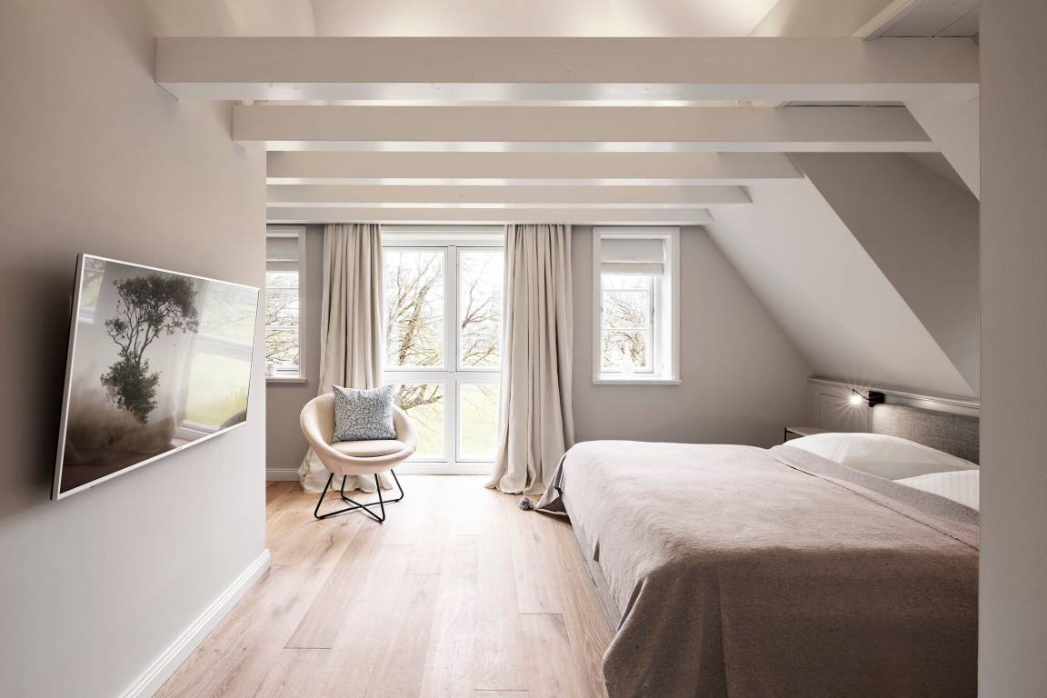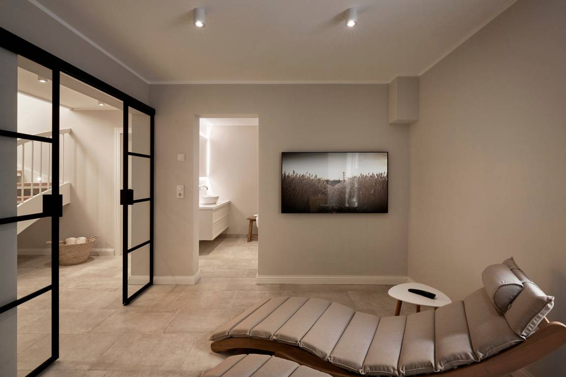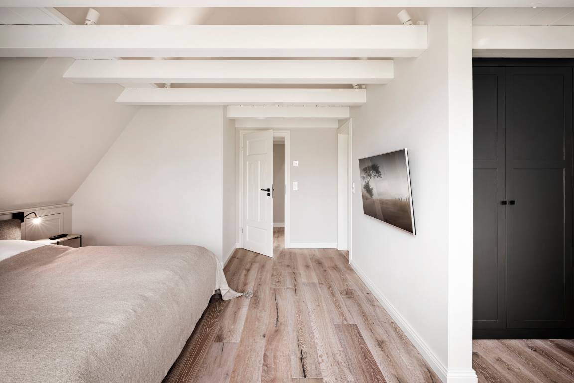 'Wit Parel' wurde mit viel Liebe zum Detail errichtet und mit seiner weißen und dunkelgrauen Gestaltung verbindet es gekonnt moderne Elemente mit gemütlichem Ambiente. Jeder Raum ist sorgfältig gestaltet und bietet einen Mix aus Eleganz und Behaglichkeit. In diesem luxuriösen Ferienhaus bleiben keine Wünsche offen. Die drei Schlafzimmer bieten viel Platz: ein Doppelzimmer mit eigenem Badezimmer, ein weiteres Doppelzimmer und ein Kinderzimmer mit zwei Einzelbetten teilen sich ein Badezimmer mit Badewanne – perfekt für Familien oder eine Gruppe von Freunden. Alle Schlafzimmer haben Einbauschränke und Fernseher. Das Highlight des Hauses ist das großzügige, helle Wohnzimmer mit zahlreichen bodentiefen Fenstern und einer offenen Küche - ein einladender Raum, in dem man sich gerne aufhält und gemeinsame Zeit genießt. Ein separates Arbeitszimmer mit Blick über die Felder bietet die Möglichkeit für Ruhe und Konzentration. Der wunderschöne Garten mit einer großen Südterrasse bietet im Sommer viel Platz für die ganze Familie. Die Sauna mit einem Ruhebereich und großem Flachbildschirm sowie einem zusätzlichen Badezimmer im ausgebauten Keller ist ein zusätzliches Juwel, das für Entspannung und Wellness sorgt, besonders nach einem Tag voller Aktivitäten auf der Insel. Das Haus vereint Komfort, Stil und eine einladende Atmosphäre und verspricht einen unvergesslichen Aufenthalt.