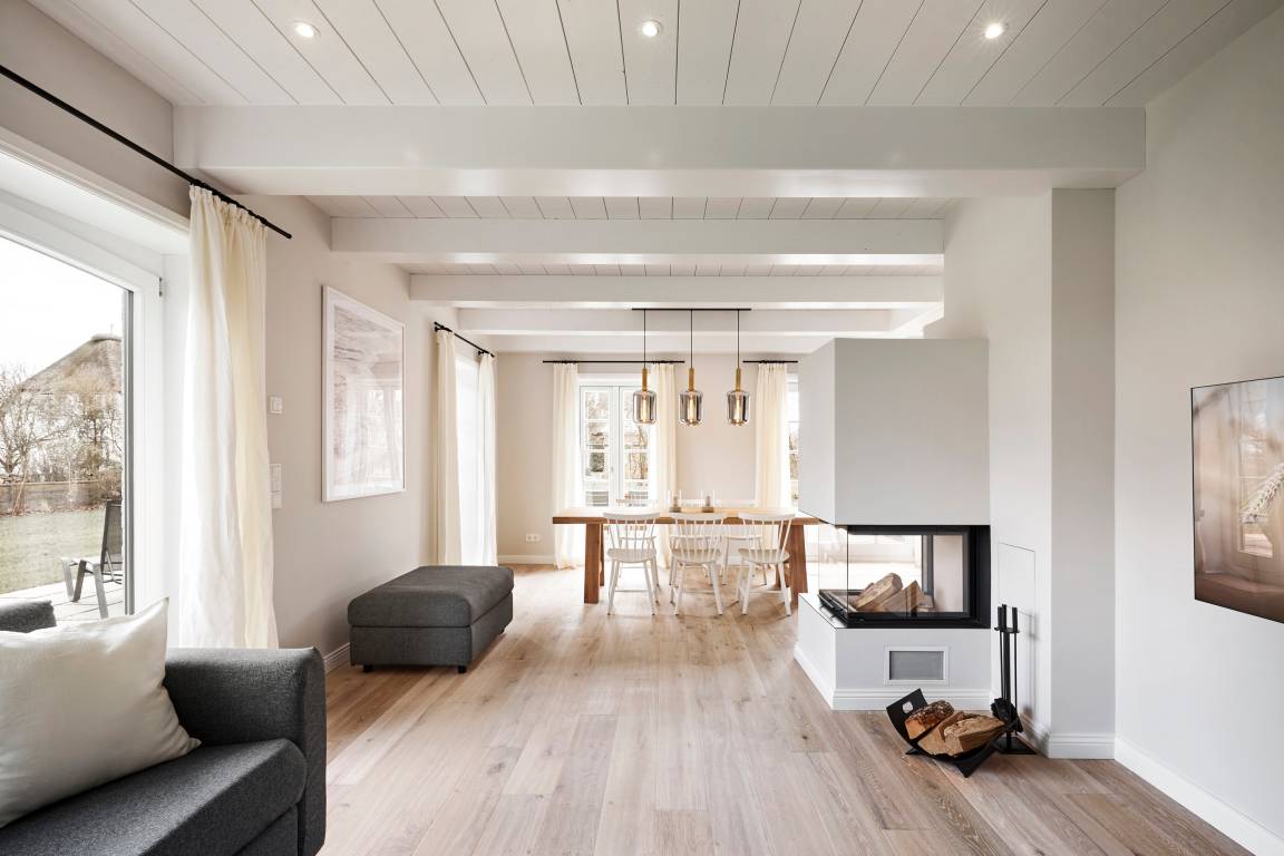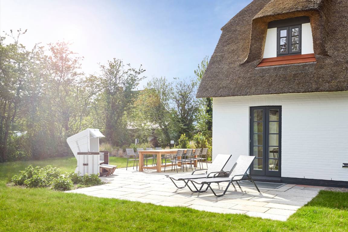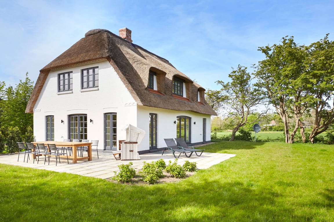 Das wunderschöne reetgedeckte Einzelhaus 'Wit Parel' liegt ruhig in einer Sackgasse am Dorfrand des zauberhaften Nieblums und bietet einen herrlichen Blick über die Felder. Nieblum, eines der schönsten Dörfer von Föhr, verleiht diesem außergewöhnlichen Reethaus eine besonders malerische Kulisse, die Ruhe und Erholung verspricht. Mit dem Fahrrad sind es nur 10 Minuten zum Strand.