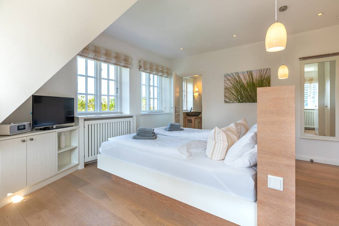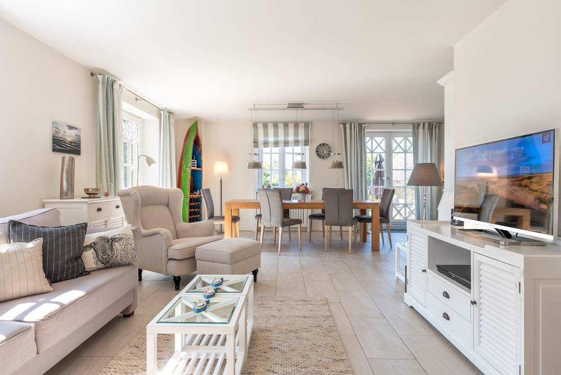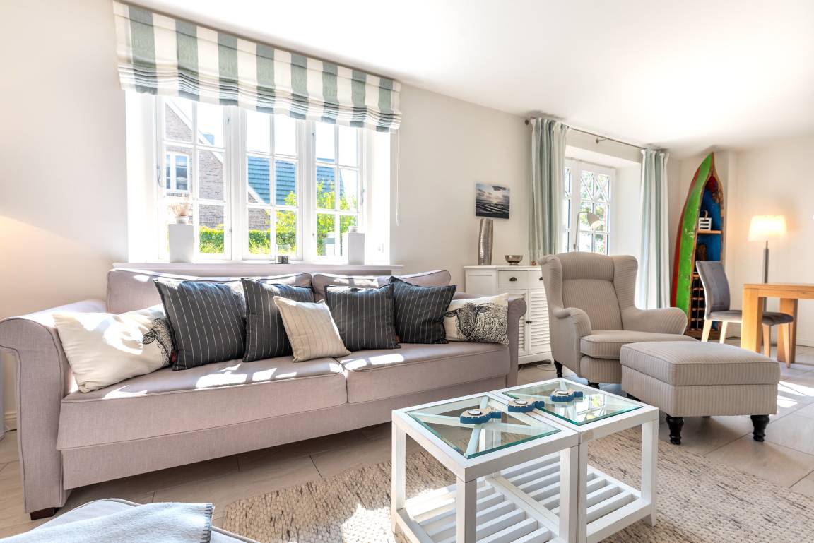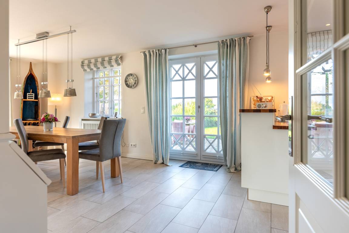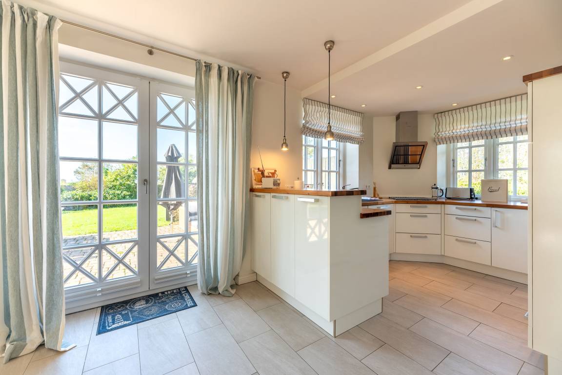 Verbringen Sie Ihren Urlaub am Kliff. Goting ist der ruhige Ortsteil von Nieblum und liegt am einzigen Kliff der Insel. Die Reetdachdoppelhaushälfte liegt auf einem ca. 570 qm großen, sonnigen Grundstück. Sie genießen einen freien Blick über die Wiesen bis hin zum Meer. Der Strand liegt fast direkt vor Ihrer Haustür und ist mit wenigen Schritten zu erreichen. Blicken Sie aus dem Obergeschoss auf die Nordsee - dieser Blick über das Wattenmeer und auf die Nachbarinsel Amrum ist einzigartig. In wenigen Minuten erreichen Sie Nieblum. Das Friesendorf gilt seit langem als eines der schönsten Dörfer in ganz Norddeutschland. Die alten Kapitänshäuser, gute Einkaufsmöglichkeiten, schöne Restaurants und nette Cafes machen es zu jeder Jahreszeit zu einem unvergesslichen Urlaubsort.