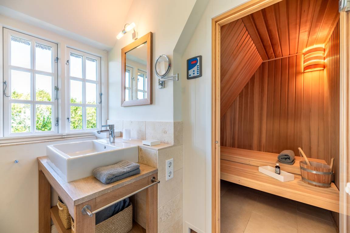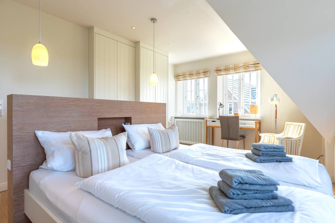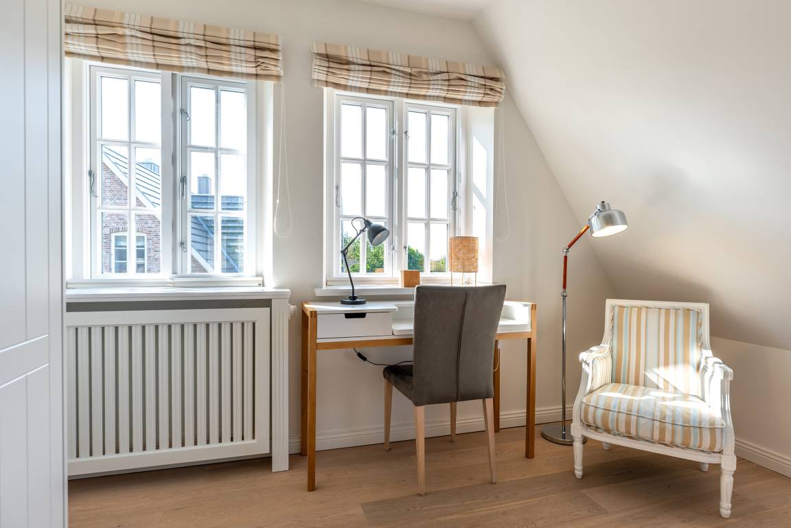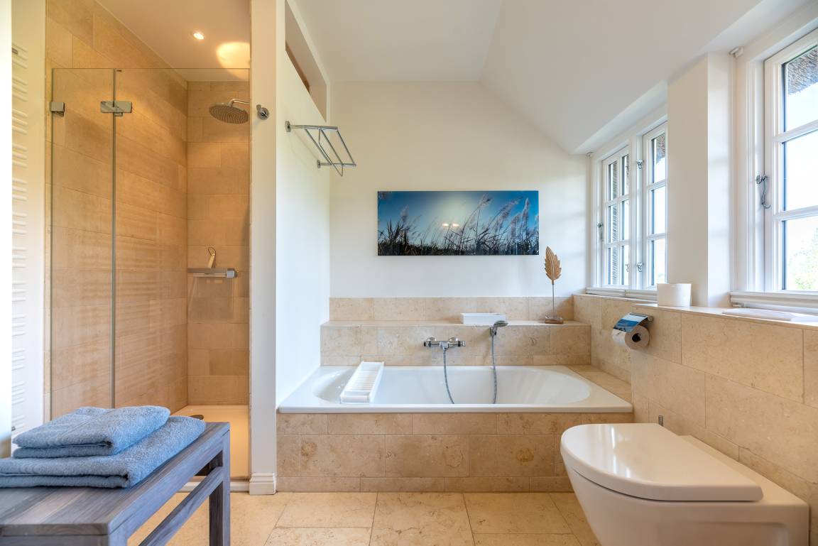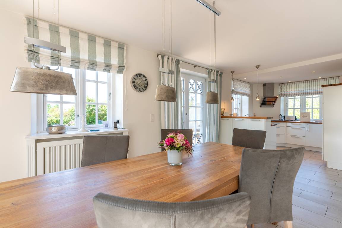 Verbringen Sie Ihren Urlaub am Kliff. Goting ist der ruhige Ortsteil von Nieblum und liegt am einzigen Kliff der Insel. Die Reetdachdoppelhaushälfte liegt auf einem ca. 570 qm großen, sonnigen Grundstück. Sie genießen einen freien Blick über die Wiesen bis hin zum Meer. Der Strand liegt fast direkt vor Ihrer Haustür und ist mit wenigen Schritten zu erreichen. Blicken Sie aus dem Obergeschoss auf die Nordsee - dieser Blick über das Wattenmeer und auf die Nachbarinsel Amrum ist einzigartig. In wenigen Minuten erreichen Sie Nieblum. Das Friesendorf gilt seit langem als eines der schönsten Dörfer in ganz Norddeutschland. Die alten Kapitänshäuser, gute Einkaufsmöglichkeiten, schöne Restaurants und nette Cafes machen es zu jeder Jahreszeit zu einem unvergesslichen Urlaubsort.