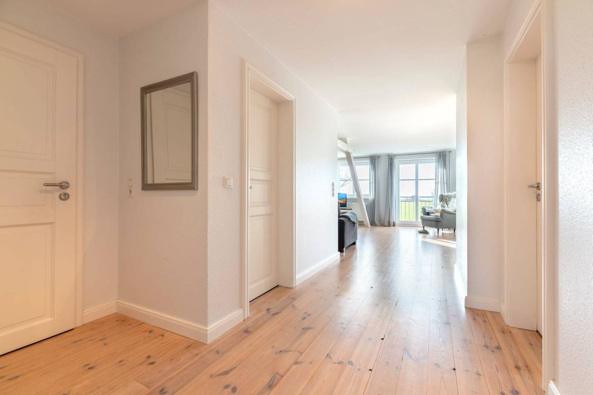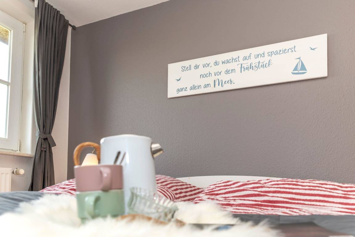 Stilvoll und gemütlich eingerichtete Ferienwohnung für 4 Personen mit Garten, Liegewiese und Spielplatz zur Mitbenutzung.