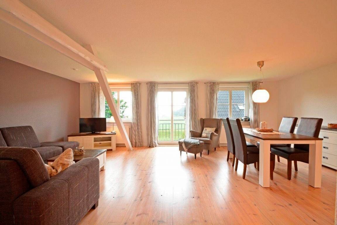 Die Ferienwohnung "Leefke" ist sehr liebevoll und modern eingerichtet. Das gemütliche Wohnzimmer lädt Sie zu entspannten Abendstunden ein. Ein Fernseher sowie ein DVD Player und ein Radio stehen zur Unterhaltung zur Verfügung.