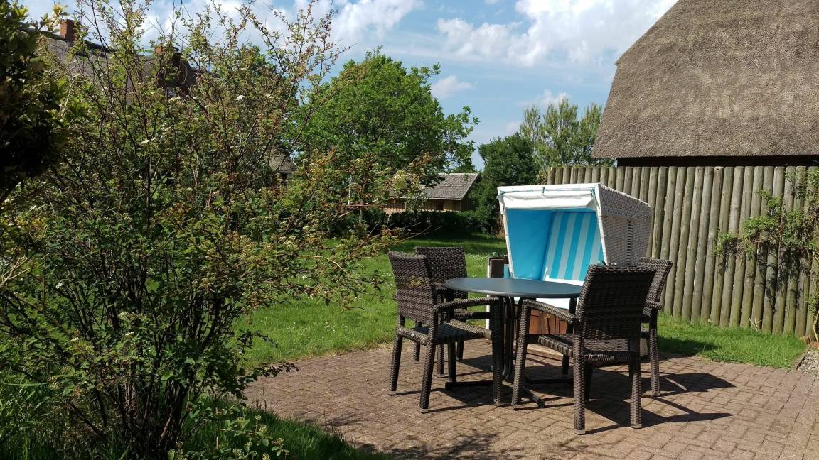 Die Wohnung befindet sich im Erdgeschoss. Es gibt eine voll ausgestattete Küche mit Esstisch, eine gemütliche Couch, ein Kaminofen für kühle Abende, ein Schlafzimmer mit TV und ein Duschbad. Auf der Terrasse mit angrenzendem Garten sind Sitzmöbel und ein Strandkorb (während der Saison) vorhanden. Bei der Couch im Wohnzimmer handelt es sich um eine Schlafcouch - so können 2 Personen auch getrennt schlafen. Im Keller stehen Waschmaschine und Trockner gegen Gebühr zur gemeinschaftlichen Nutzung zur Verfügung.