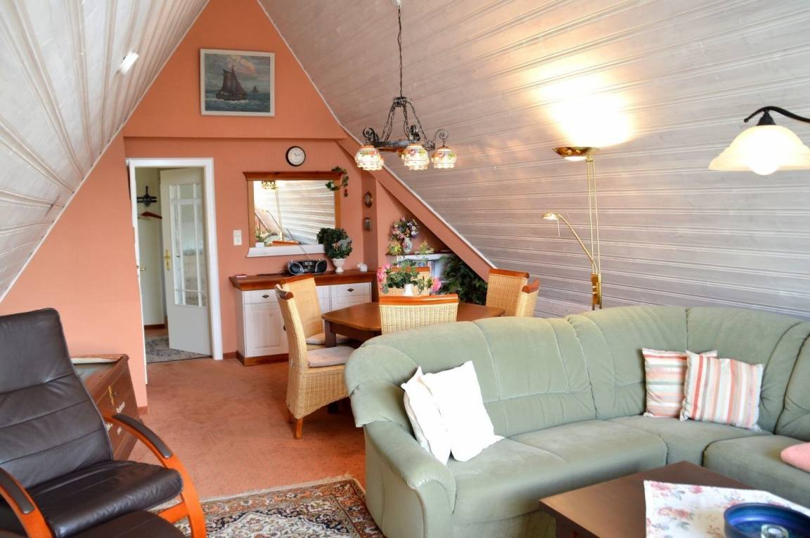 Das helle und freundliche Wohnzimmer hat Zugang zum Südbalkon. Die Essgruppe ist in nordischen Farben gehalten. Flachbid-SAT-TV, DVD-Player und Musikcenter runden das Bild ab. Die zwei Schlafzimmer sind mit Doppelbetten ausgestattet. Es ist genügend Platz vorhanden, um hier ein zusätzliches Kinderbett aufzustellen. Eine sep. Küche (komplett ausgestattet) und das Badezimmer mit Duche/WC gehören ebenfalls zur Ausstattung. Eine Unterstellmöglichkeit für Fahrräder und Kinderwagen ist ebenfalls vorhanden.