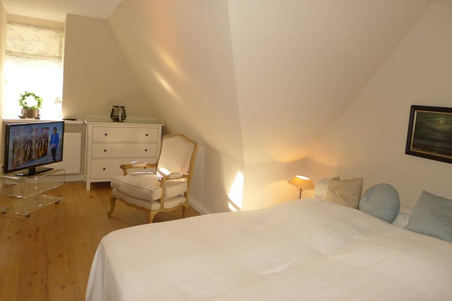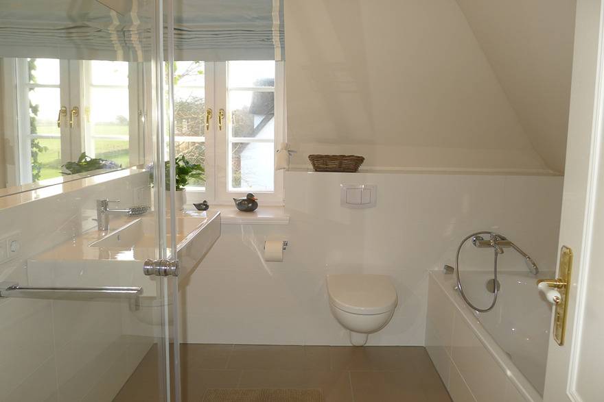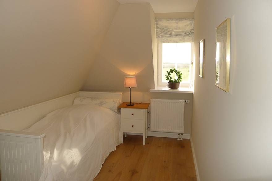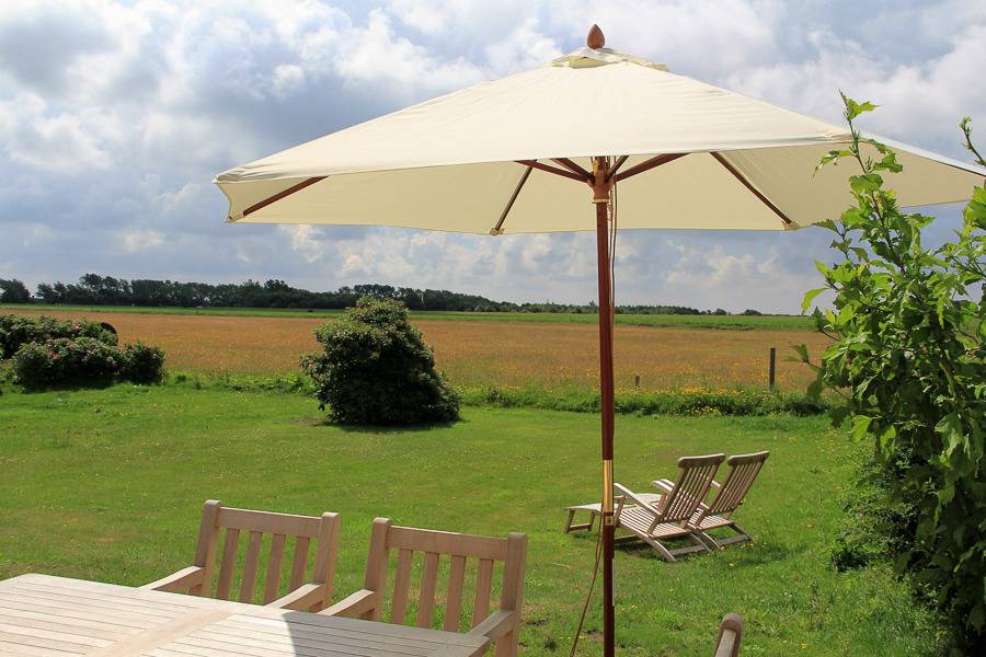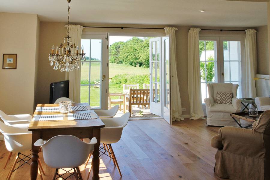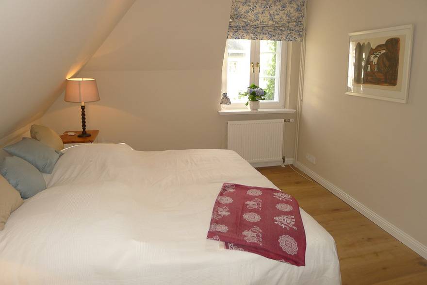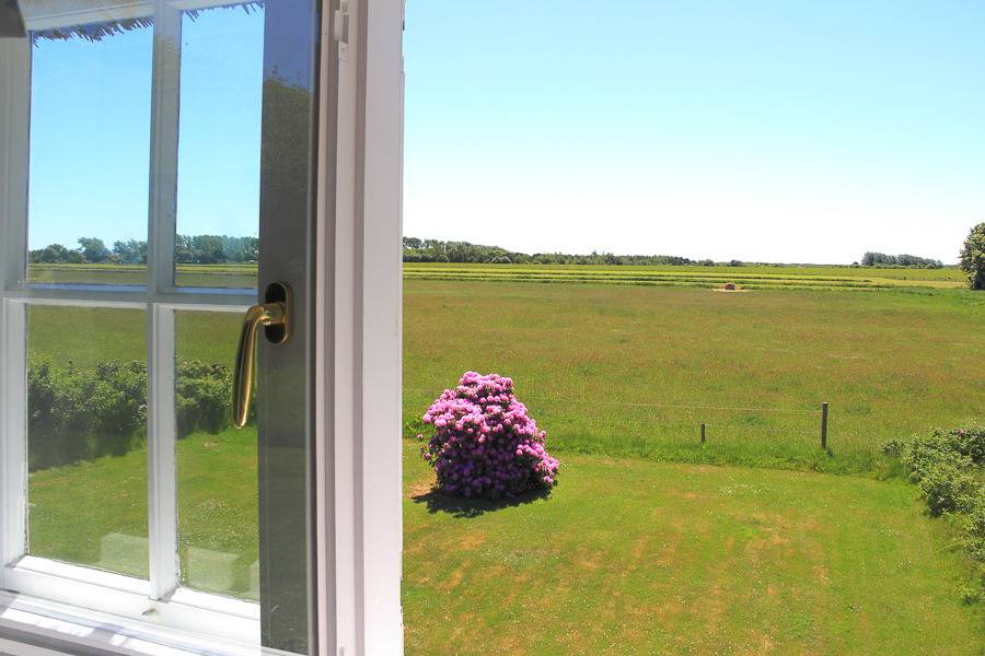 Das Reetdachhaus „Westerheide" besticht durch seine wunderschöne und absolut ruhige Lage zwischen dem Strand und dem historischen Ortskern des Friesendorfes Nieblum. Die zu vermietende Doppelhaushälfte ist sehr geschmackvoll ausgestattet. Ein großzügiger, lichtdurchfluteter und in hellen Farben gehaltener Wohnraum mit Kamin, der daran angrenzende Essbereich und die offene moderne Küche vermitteln den Gästen Ferienatmosphäre. Im Obergeschoss befinden sich drei gemütliche Schlafräume und zwei helle Badezimmer. Eine eigene Sauna für Ihren Wellnesstag auf Föhr befindet sich im Untergeschoss. Der große nach Süden ausgerichtete Garten sowie die herrliche Terrasse mit weitem Blick über die Wiesen bis zu den Deichen verleiten zum Träumen und werden Sie begeistern.
