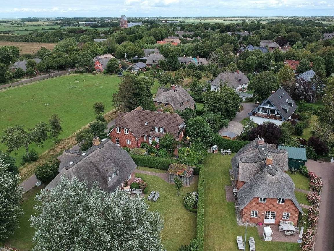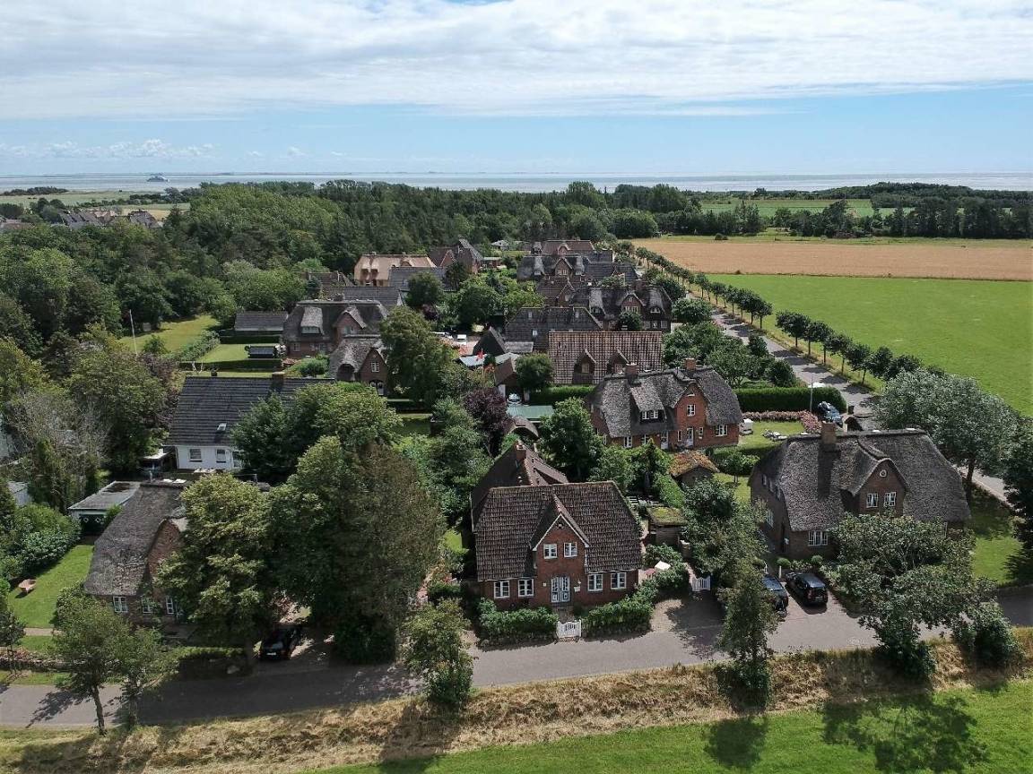 Umgeben von reetgedeckten Friesenhäusern im historischen Inseldorf Nieblum bietet die Wohnung kurze Wege zum Sandstrand und Weltnaturerbe Wattenmeer wie auch zu den herausragenden kulinarischen und kulturellen Angeboten des Ortes. Diverse Restaurants, ein kleiner Supermarkt, ein Bäcker, ein Feinkostfischhändler und ein lokaler Metzger sind ebenso fußläufig erreichbar wie der Friesendom St. Johannis auf Föhr aus dem 12. Jahrhundert.