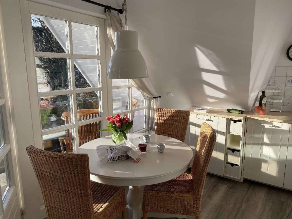 Die vollständig modernisierte Dachgeschoss-Wohnung "Blaukehlchen" erwartet Sie mit heller, freundlich einladender Atmosphäre auf 35 qm. Die breite Fensterfront über die gesamte Giebelbreite verleiht der kleinen Wohnung sehr viel Sonnenlicht und bietet so den Rahmen für einen angenehmen Aufenthalt in einer der begehrtesten Lagen der Insel Föhr.