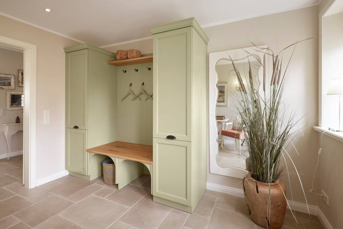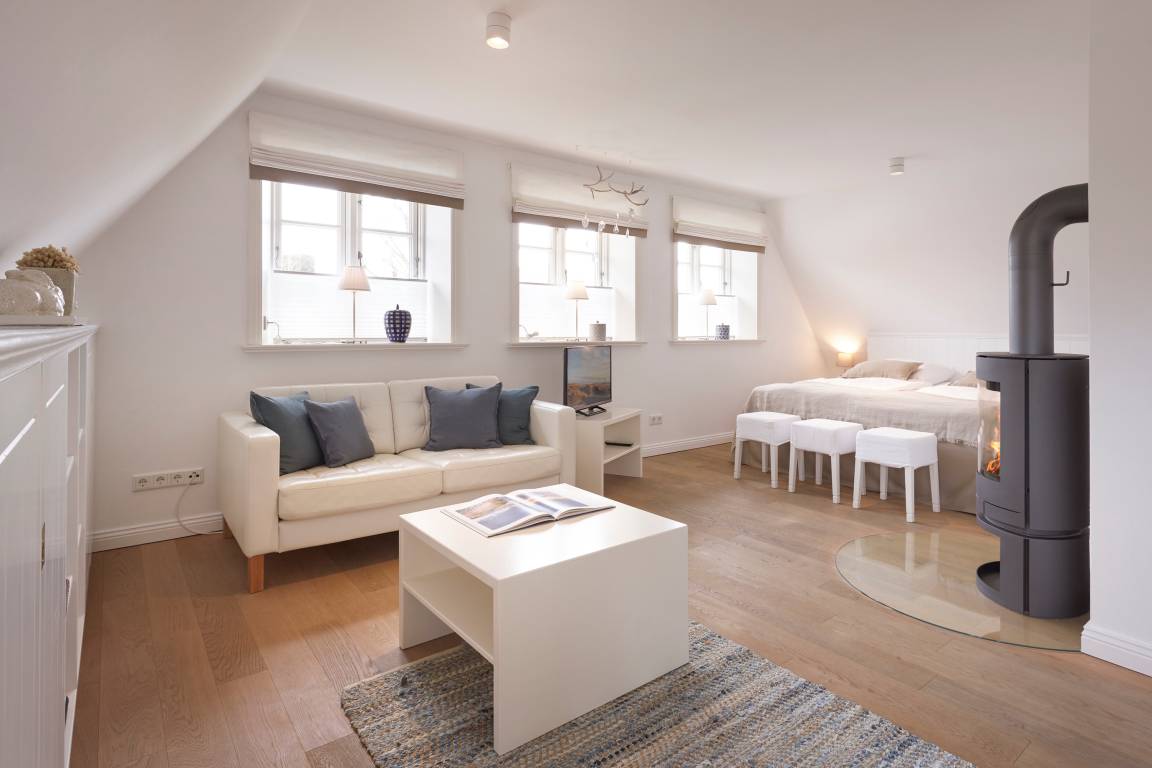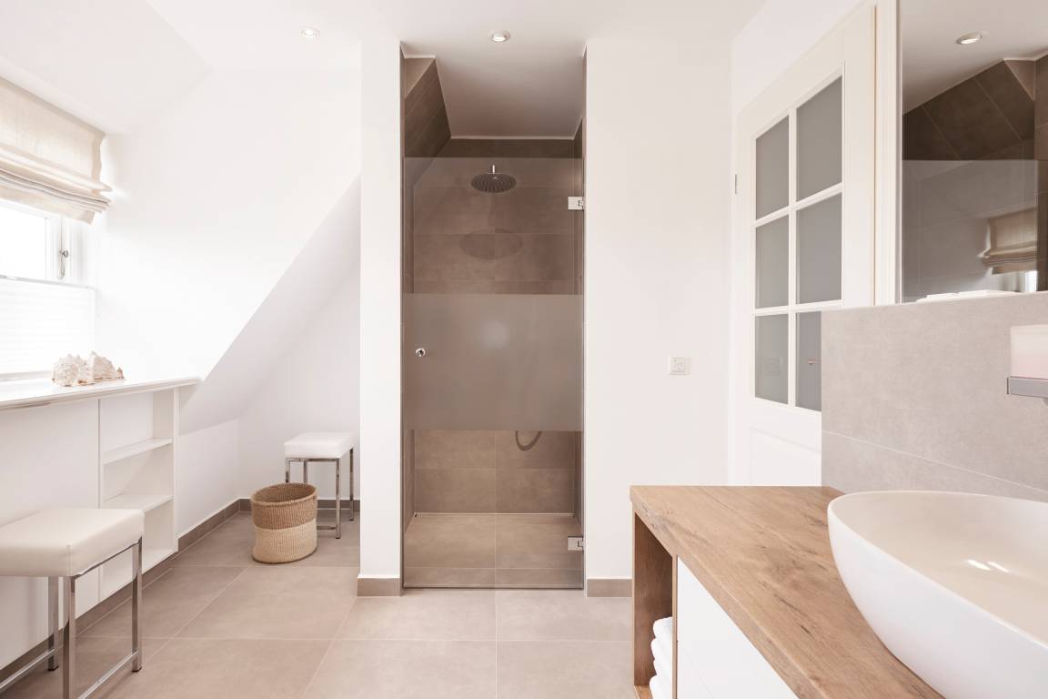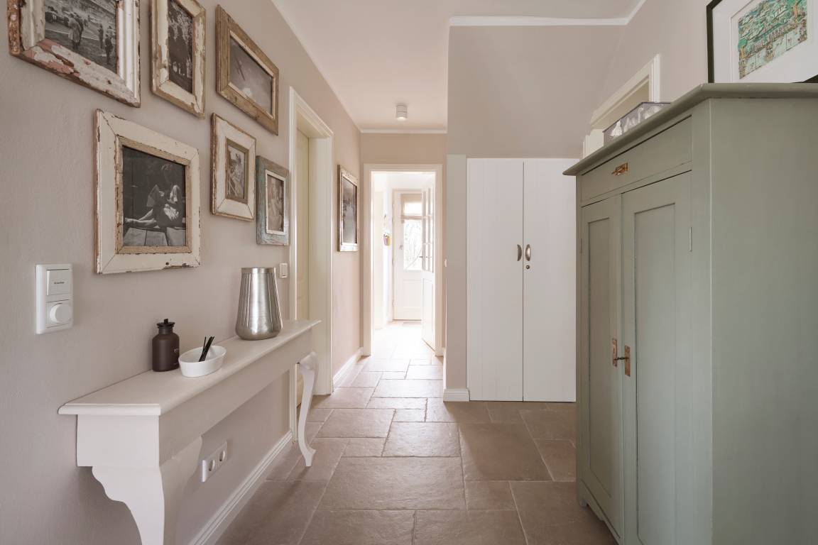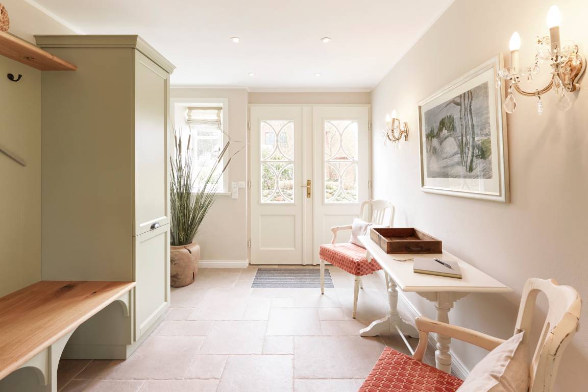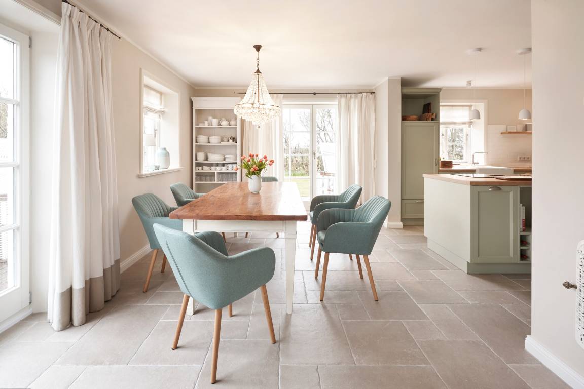 Auch im Haus ist an alles gedacht, was den Aufenthalt angenehm und zu einem besonderen Erlebnis macht. Die stilvolle Einrichtung des lichtdurchfluteten Landhauses in harmonischer Farbgestaltung verbindet Tradition, Moderne und Gemütlichkeit und verbreitet gleichzeitig Ruhe und Exklusivität. Ein Highlight ist sicherlich die technisch perfekt ausgestattete , offene Küche mit grossem Küchenblock, der zu entspannter Geselligkeit einlädt. Das Wohn-und Esszimmer mit einem edlen, englischen Limestone Boden mit Fussbodenheizung gibt dem Landhaus seinen besonderen Charakter. Für gemütliche Stunden in der kalten Jahreszeit wärmt Sie ein historischer Kachelofen im Wohnzimmer. Eins von drei Schlafzimmern befindet sich im Erdgeschoss , zwei weitere im Obergeschoss. Das Haus verfügt insgesamt über drei hochwertige Bäder mit modernen Duschen sowie eine kleine, aber feine Sauna. Der große Spitzboden kann als Relax- oder Kinderspielzone genutzt werden oder bietet zwei kleinen Personen eine bequeme, zusätzliche Schlaflösung. Das Haus hat in allen Bereichen eine sehr wertige Ausstattung und bietet beste Voraussetzungen für einen entspannten Urlaub.