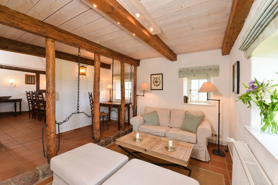 Leicht erhöht über dem Meer hinter zwei windschiefen Bäumen, umgeben von den Weiden der Wildpferde und Highlandcattle liegt die Fischerkate völlig allein inmitten der ursprünglichen Natur des Landschaftsschutzgebiet Geltinger Birk mit Blick auf die Geltinger Bucht. Diese Reetdachkate wurde früher von Fischern bewohnt. Vor der Eindeichung des Beveroer Noers 1820, wurde durch sie die Milch der Birk beweidenden Rinder nach Nordschau übergesetzt. Später fand der bekannte lutherische Theologe und Politiker Martin Pörksen mit seiner Frau und den gemeinsamen 13 Kindern hier ein Zuhause. Viele Jahre ist die Fischerkate nun schon ein Ferienhaus. Im Rahmen der Renovierungen wurden der historische Charakter erhalten, der den einzigartigen Charme dieses Hauses ausmacht. Erhaltene Orginalelemente des Stalls und teils historische Türen zeugen von der Geschichte dieser Kate.