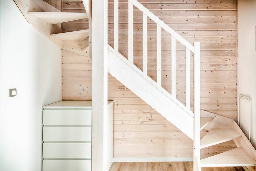 PL 34.17 Ferienhaus 2-6 Pers.: 3-Zimmer-Ferienhaus mit 52 qm Wohnfläche über 2 Etagen. Parterre: Wohn-/Essraum mit Couchgarnitur (Ausziehcouch 2 Pers.), Flachbild Sat-TV (deutsche Programme), großem Esstisch, Küchenzeile (Induktionsherd 2 Platten, Mikrowelle, Spülmaschine). Modernes Bad mit Du, Wb, WC. 1. Etage: 2 Doppelzimmer.