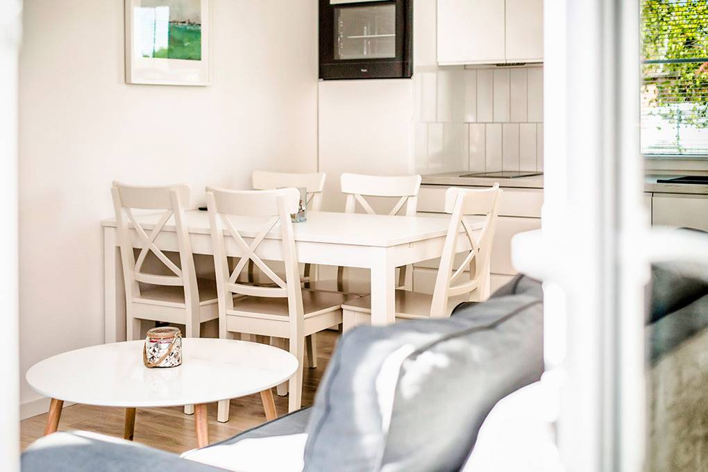 Schöne Reihenhäuser mit moderner, geschmackvoller Einrichtung. Kostenloser Internetzugang über W-Lan. Flachbild-Sat-TV (deutsche Programme). Zentralheizung. Terrasse mit Sitzmöbeln. Nichtraucherwohnungen. 1 Pkw-Stellplatz/Reihenhaus vor dem Grundstück.