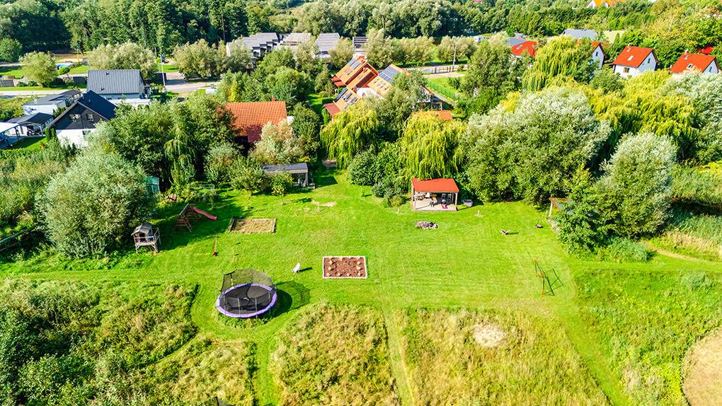 Ort: Niechorze. Sehr schöne, ruhige Lage auf einem weitläufigen Wiesengrundstück am Ortsrand. Ostseestrand 950 m. Ortsmitte 700 m.