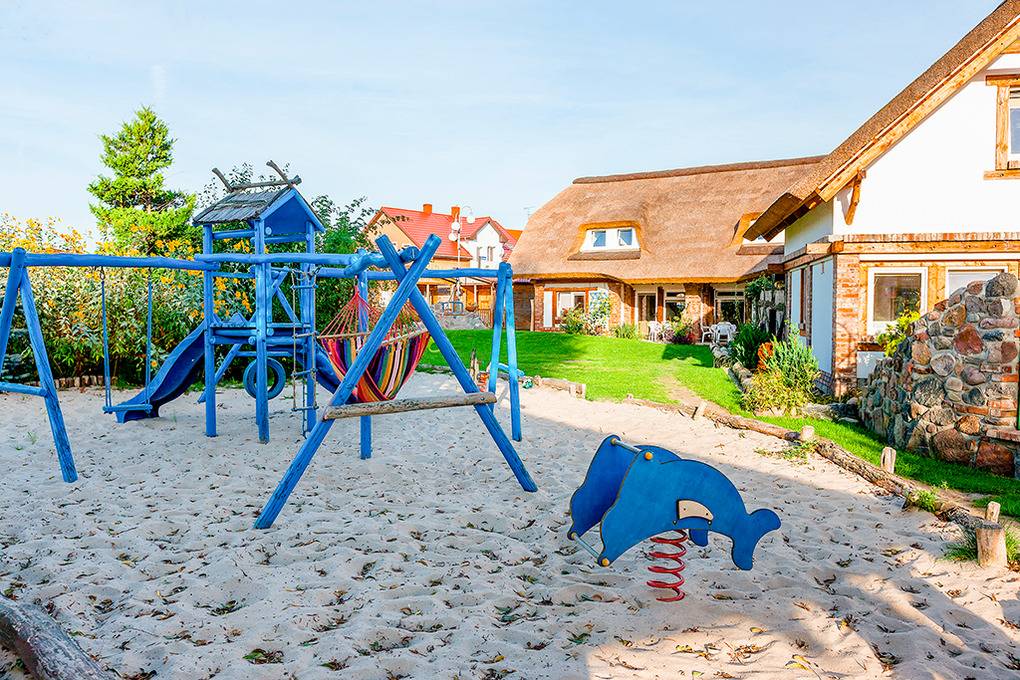 Ort: Niechorze. Ideale ruhige Lage in der Ortmitte in einer Ferienhausanlage. Ostseestrand nur 100 m. Ortsmitte 300 m.