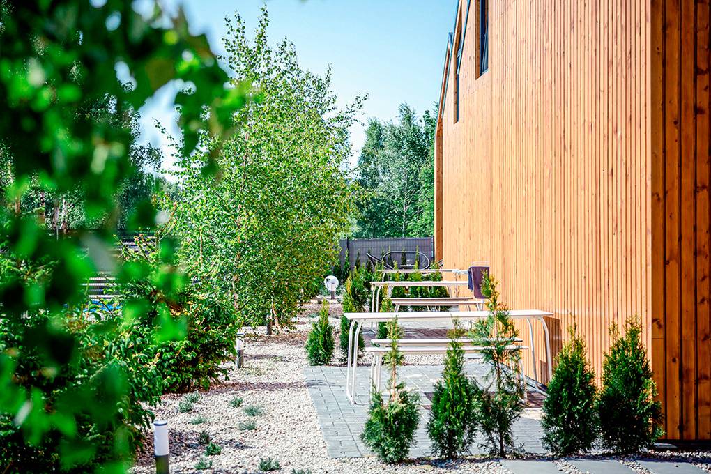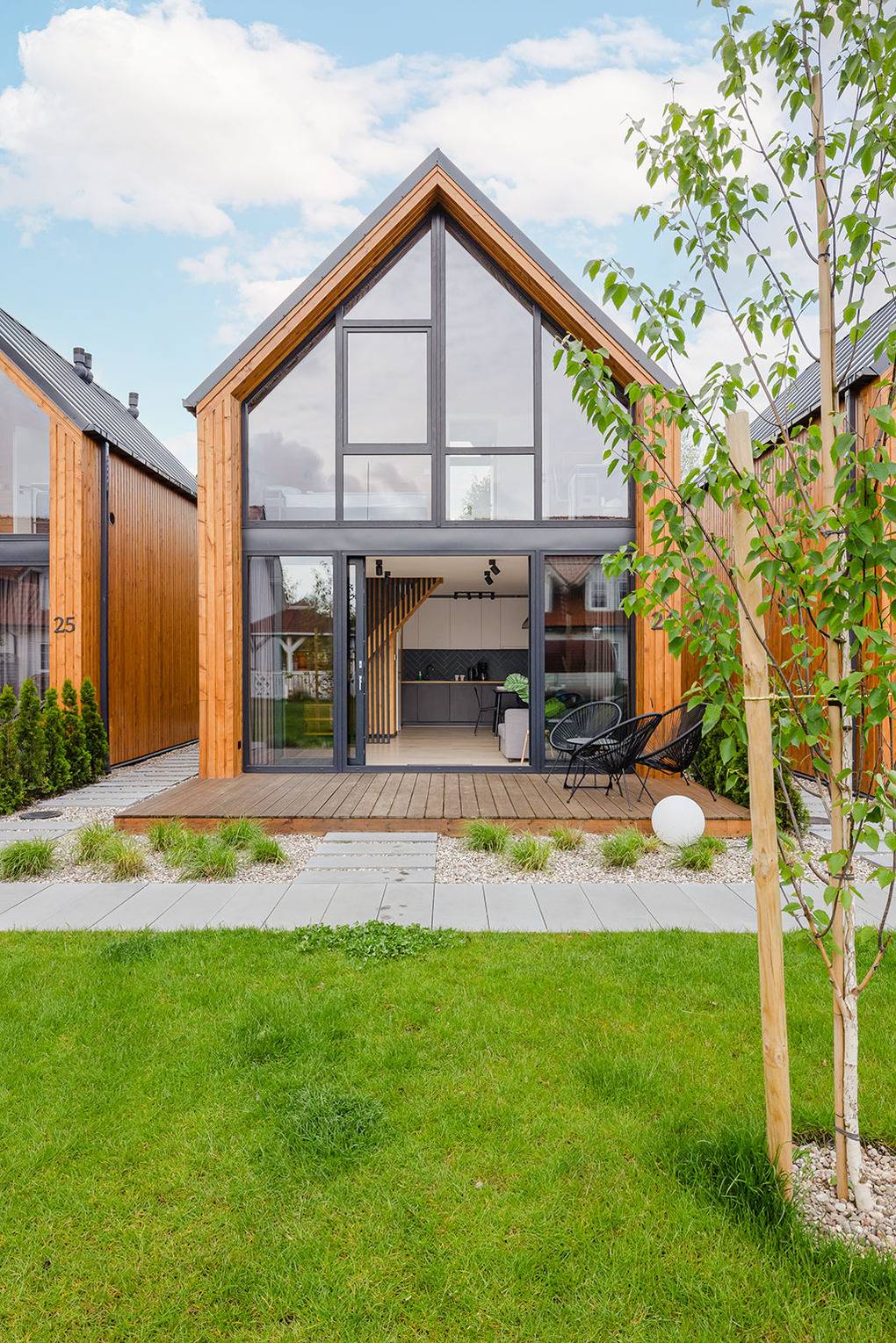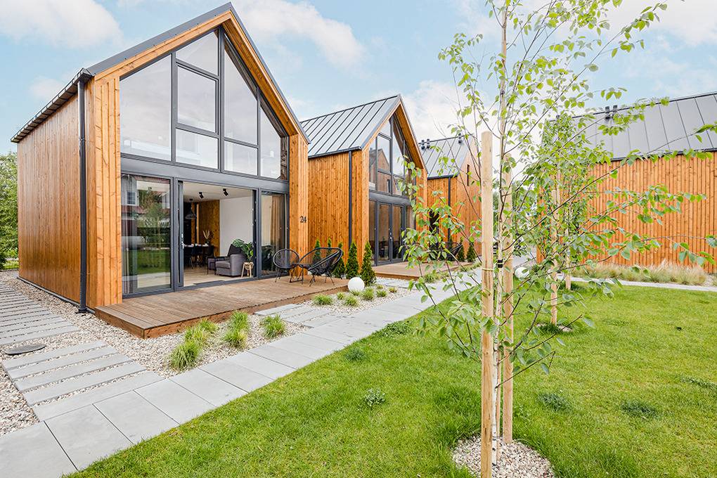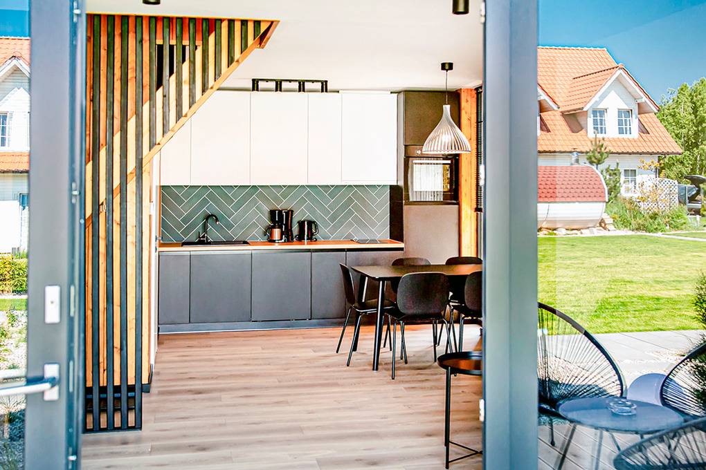 Haus: Schöne, stilvolle Ferienhausanlage, 2021 neu erbaut. Nichtraucherhäuser. Moderne, geschmackvolle Einrichtung. Alle Häuser mit Klimaanlage (Kühl- und Heizfunktion). Kostenloses Internet über W-Lan. Großzügige Terrasse mit Sitzmöbeln. Sauna und Grill zur Gemeinschaftsnutzung im Garten. Schöner Spielplatz für Kinder. 1 Pkw-Stellplatz/Haus vor dem Grundstück. Eine Waschmaschine in der Anlage zur gemeinschaftlichen Nutzung.
