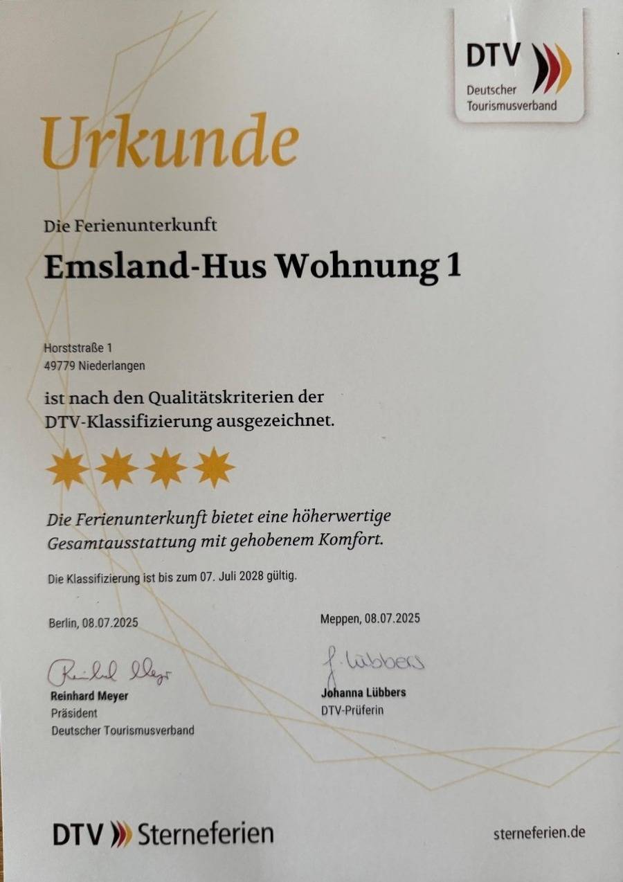 Unsere 4-Sterne-Erdgeschosswohnung bietet viel Komfort für Paare und Familien. Mit zwei Schlafzimmern, direktem Zugang zur Terrasse und barrierearmer Ausstattung ist sie ideal zum Ankommen, Abschalten und Wohlfühlen im Emsland.