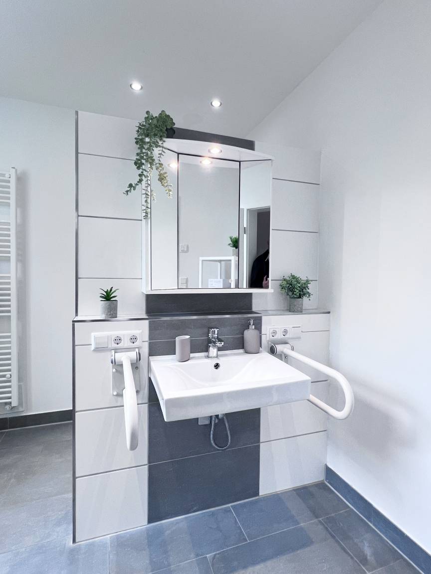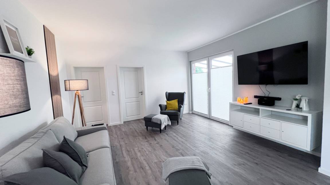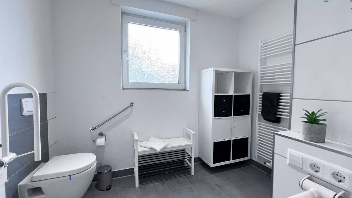 Geräumige, barrierefreie Ferienwohnung mit 70 m² im Erdgeschoss - ideal für Familien oder Gäste mit Mobilitätseinschränkungen. Zwei Schlafzimmer, ein gemütliches Wohnzimmer und eine voll ausgestattete Küche bieten viel Komfort. Die eigene Terrasse sowie der Zugang zum Gemeinschaftsgarten mit Grillplatz und Feuerstelle machen den Aufenthalt besonders erholsam.