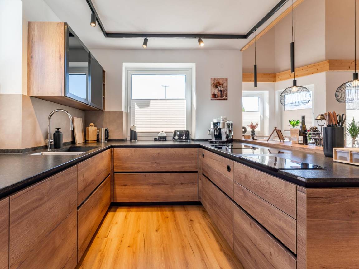 Hausbeschreibung : Entfliehen Sie dem Alltag in diesem luxuriösen Ferienhaus, in dem sich Komfort, Stil und Natur vereinen. Genießen Sie einen warmen, gemütlichen Abend am Kamin oder kochen Sie kunstvoll in der sehr luxuriösen offenen Küche mit Bar, die für kulinarische Enthusiasten komplett ausgestattet ist. Das Haus ist in einem hochwertigen Stil mit warmen Holztönen, stilvollen Details und einer gemütlichen, exklusiven Atmosphäre eingerichtet. Ein Ort, an dem Privatsphäre und Ruhe an erster Stelle stehen