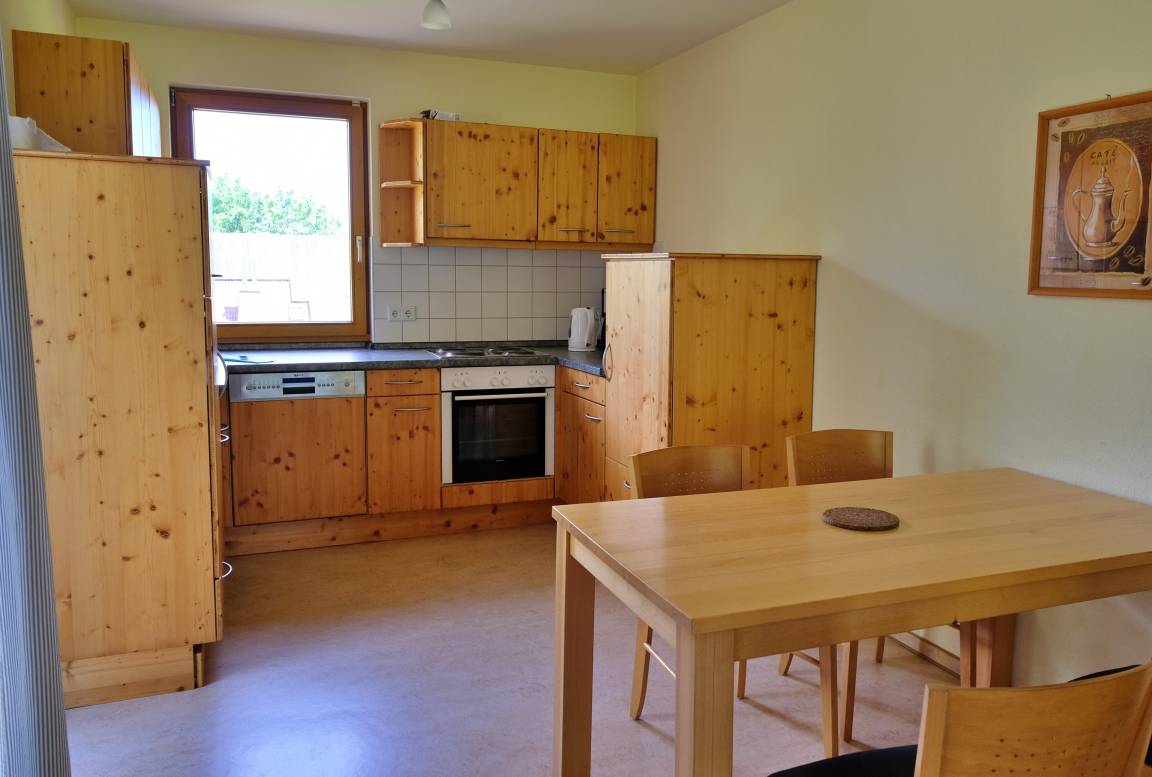 Ihre Ferienwohnung bietet alles, was Sie für einen komfortablen Aufenthalt brauchen: eine sonnige Süd-Terrasse mit Gartenblick, ein gemütlicher Wohnbereich mit Sat-TV, sowie eine voll ausgestattete Küche mit Kühlschrank, Geschirrspüler, Ofen, Kaffeemaschine und Wasserkocher.