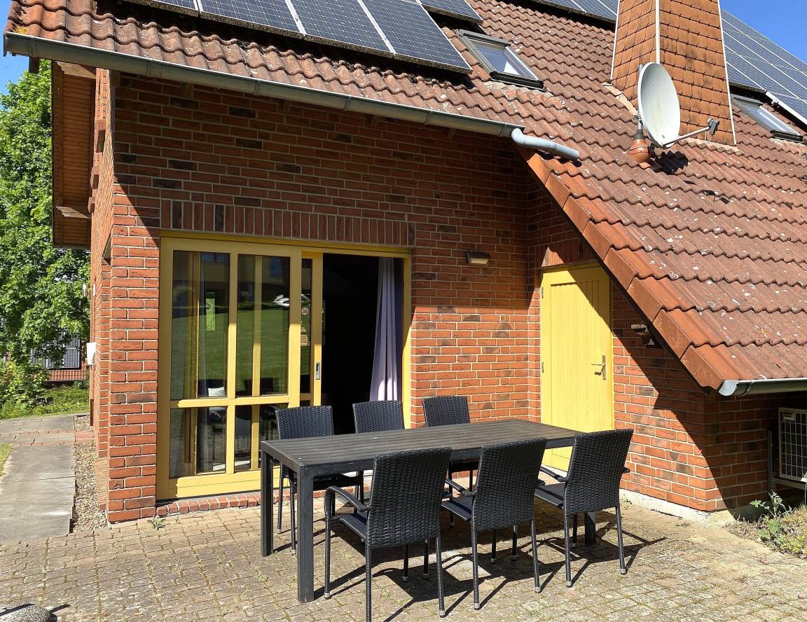 Der Park besteht aus 15 gemütlichen Doppelhäusern und einem Haupthaus mit modernen Ferienwohnungen. Dieses Ferienhaus (Haus Nr. 1) bietet Platz für 7 Personen verteilt auf drei Schlafzimmer und überzeugt durch großzügige, helle Räume, einen eigenen Eingang, eine Terrasse mit Grill sowie einen Kaminofen für gemütliche Abende. Die voll ausgestattete Küche mit Spülmaschine und der zentrale Esstisch sorgen für Komfort und gemeinsame Erlebnisse.