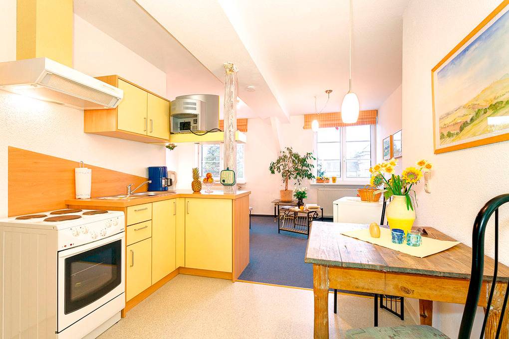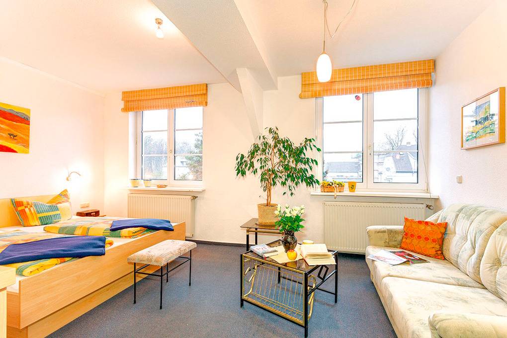 D 129.740 Wohnung 2 Pers.: Studio mit 30 qm Wohnfläche, 1. Etage. Wohn-/Schlafraum mit Doppelbett, Sat-TV, Esstisch, kleiner Küchenzeile (Backofen). Bad/WC.