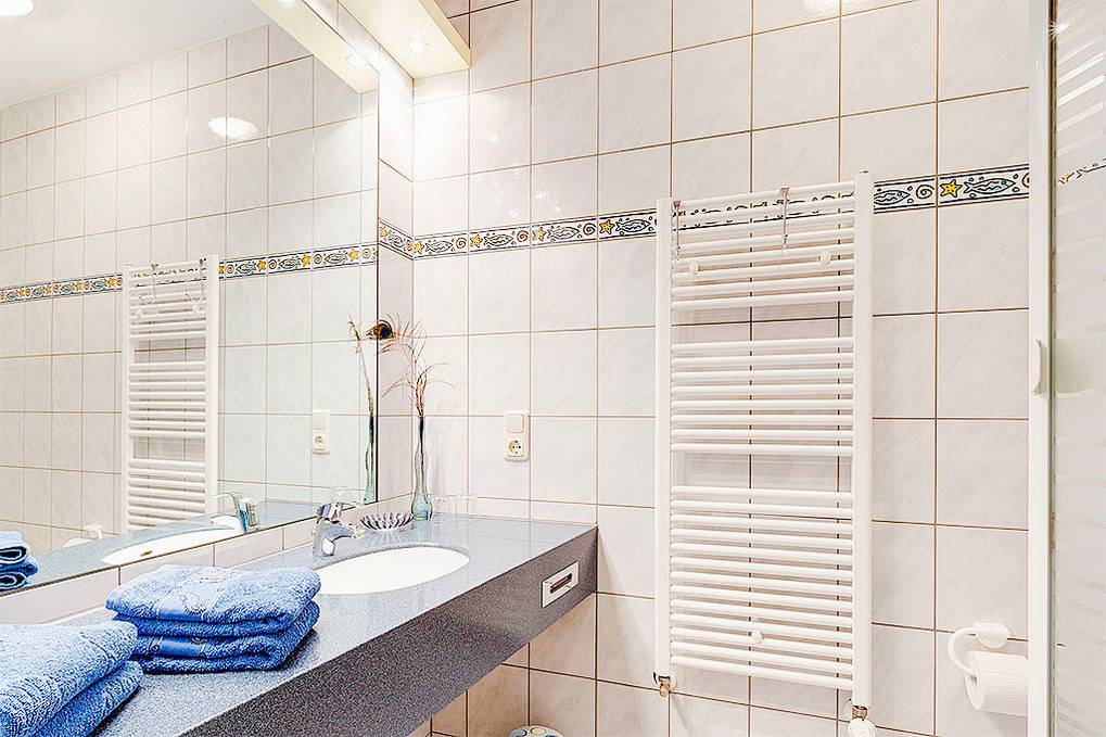 Nebenkosten: Endreinigung 65 € zzgl. Kurtaxe. Bettwäsche, Handtücher leihbar 12,50 €/Pers (obligatorisch). Zusätzliche Leistungen 1 Strandkorb/Fewo im Preis inklusive (nur im Zeitraum 11.07-29.08.26). Kostenloser Internetzugang über W-Lan. Frühstück 13 €/Pers. 1 Pkw-Stellplatz im Preis inklusive. Kinder Babybett ohne Berechnung (Bestellung). Hochstuhl ohne Berechnung (Bestellung). Haustier nicht erlaubt.Räume & Aufteilung