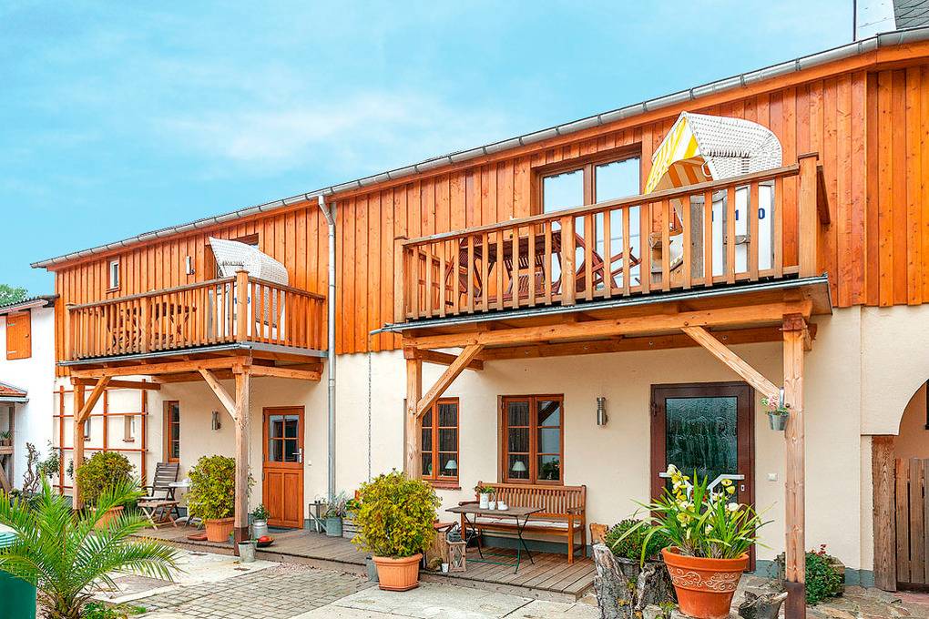 D 129.742 Wohnung 2-4 Pers.: 3-Zimmerwohnung mit 65 qm Wohnfläche, 1. Etage. Wohn-/Essraum mit Couchgarnitur, Sat-TV, Esstisch, kleiner Küchenzeile (Backofen). 2 Doppelzimmer. Bad/WC. Balkon mit Strandkorb.