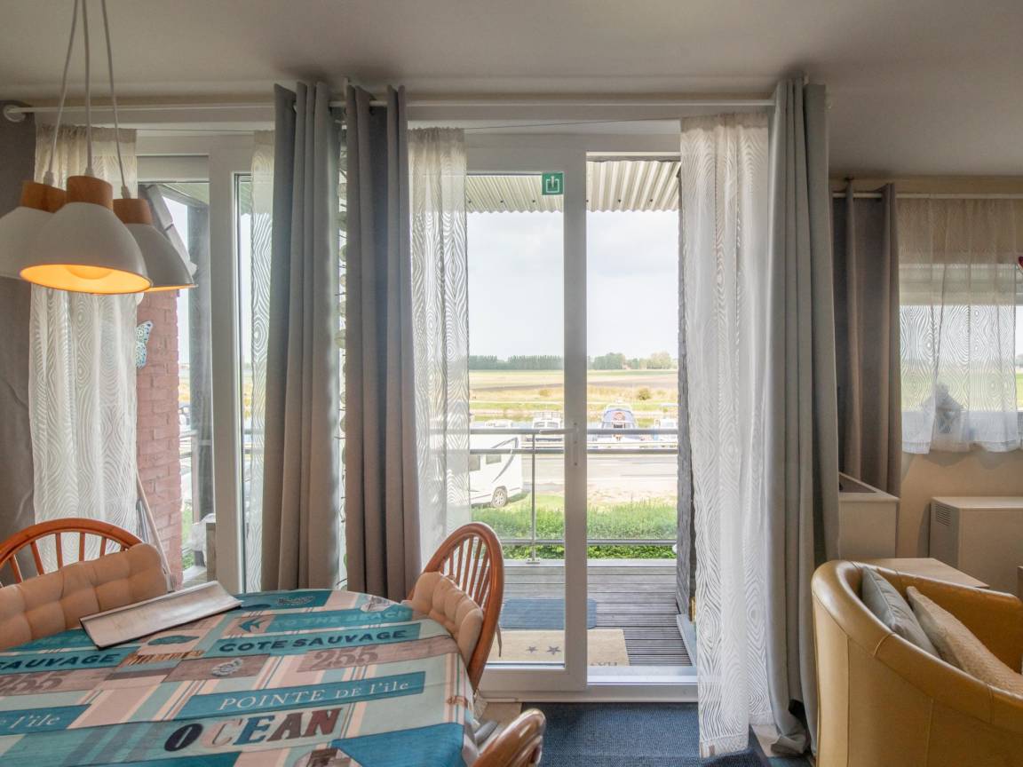 Hausbeschreibung : Gemütliche Wohnung mit offenem Wohnbereich und einer Terrasse mit Blick auf die Brugse Vaart. Diese Wohnung ist ein idealer Ausgangspunkt für die Erkundung der Region in und um Nieuwpoort, und im Ferienpark genießt jeder das Schwimmbad im Sommer und es gibt einen Spielplatz für Kinder