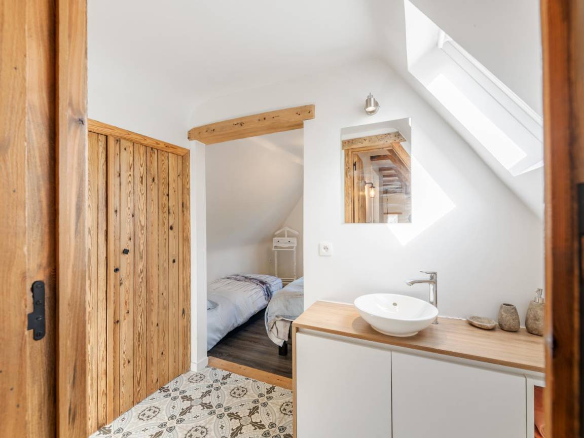 In der 1. Etage: Schlafzimmer mit Einzelbett, Doppelbett, Waschbecken , Schlafzimmer mit Doppelbett, Waschbecken