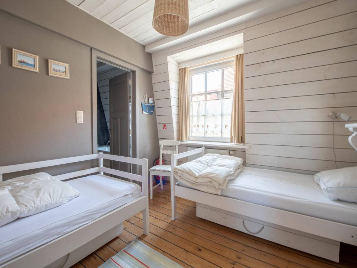 In der 2. Etage(über steile Treppe): Schlafzimmer mit 2x Einzelbett(Bettdecke, 90 x 200 cm)