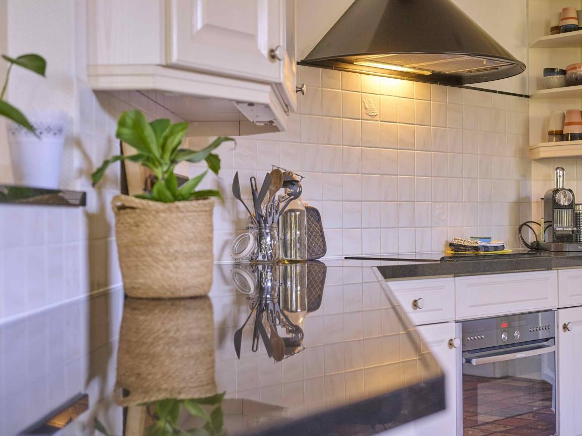 Layout : Parterre: offene Küche mit Esstisch(4 Personen), Kochplatte(4 Kochplatten, Induktion), Wasserkocher, Toaster, Dunstabzugshaube, Kaffeemaschine(nespresso cups), Kombi-Mikrowelle, Geschirrspüler, Kühl-/Gefrierkombination , Wohn-/Schlafzimmer mit Doppelbett(Boxspring, 160 x 200 cm), Doppelschlafcouch(160 x 200 cm), TV(Flatscreen, smart TV, Niederländische TV-Kanäle, Deutsch Fernsehsender, internationale TV-Kanäle), Sitzecke , Badezimmer mit Dusche, Waschbecken, Toilette