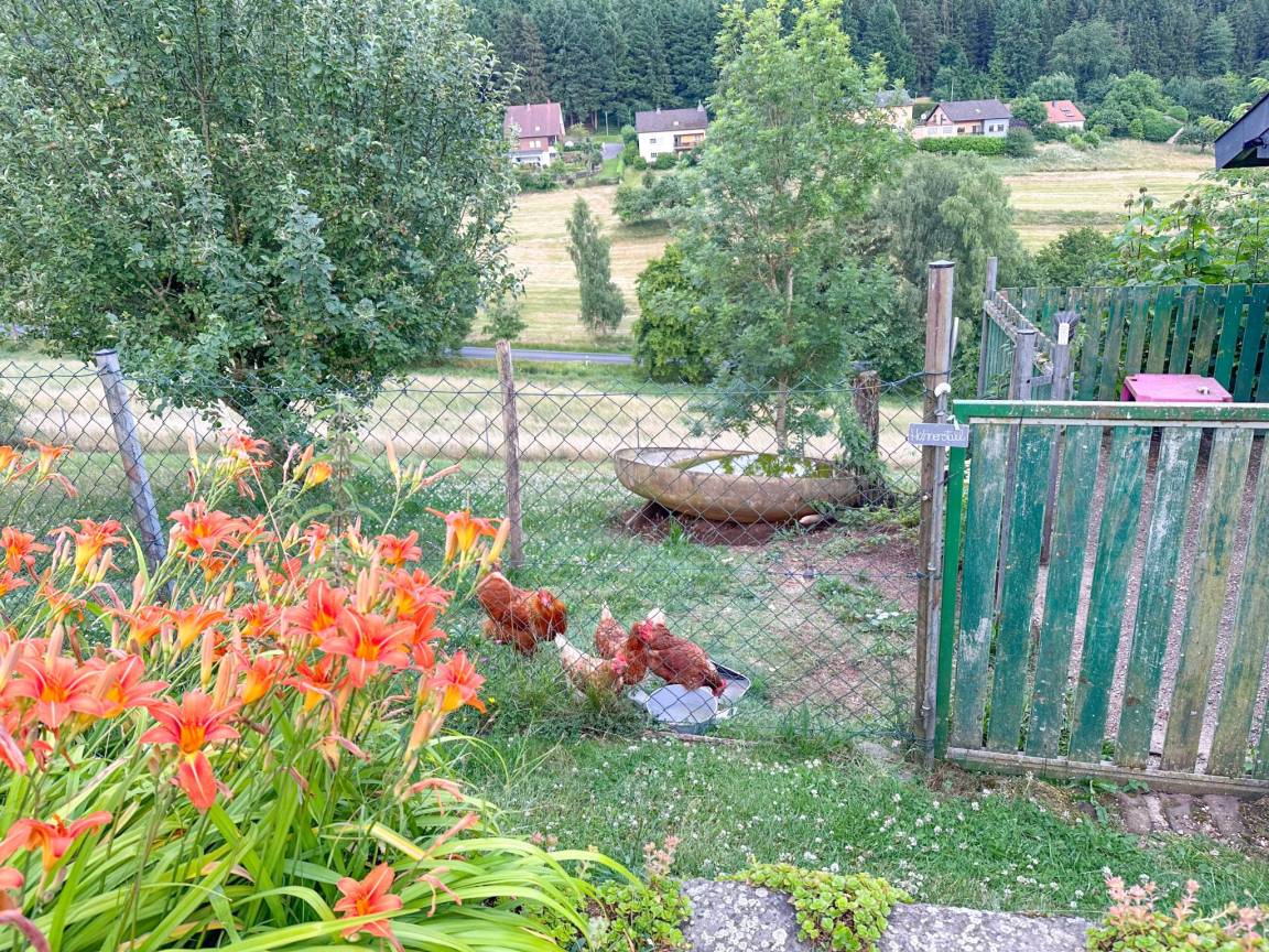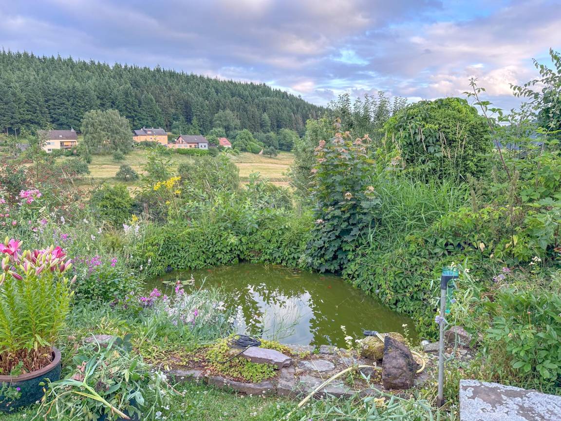Hausbeschreibung : Gönnen Sie sich einen Urlaub im idyllischen Eifeldorf Nimshuscheid, zwischen Bitburg und Prüm! Diese gemütliche, barrierefreie Wohnung liegt ruhig am Rande des Dorfes. Sie ist komplett ausgestattet. Ihr Lieblingsplatz wird die geschützte Terrasse sein, von der aus Sie einen schönen Blick über ein bewaldetes Tal haben. Genießen Sie den Garten mit Teich, schönen Blumen und Weinreben. Die Ruhe und das Naturerlebnis, das Sie suchen, wenn Sie in die Eifel fahren, werden Sie hier finden!