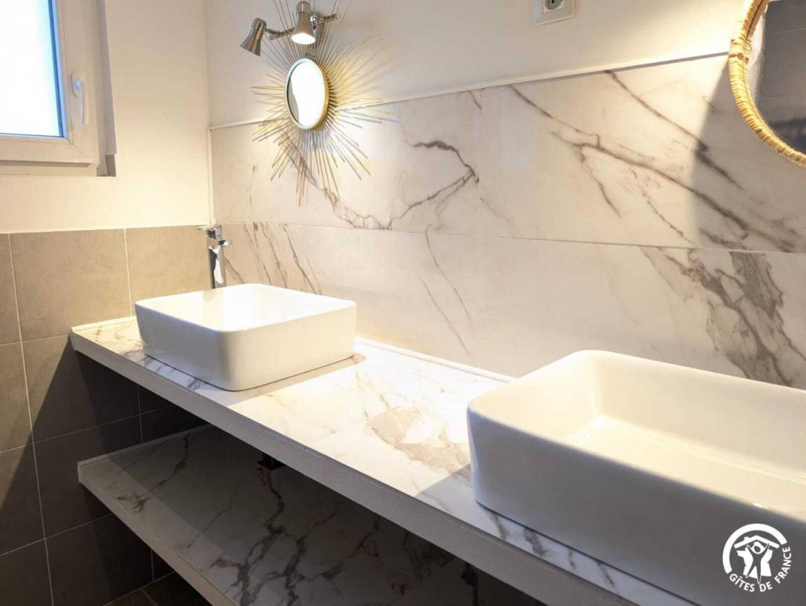„Séjour très agréable dans un gîte refait à neuf et très bien équipé. Notre seul bémol a été sur un des matelas qui est très dur. Nous l'avons d'ailleurs signalé à propriétaire.“