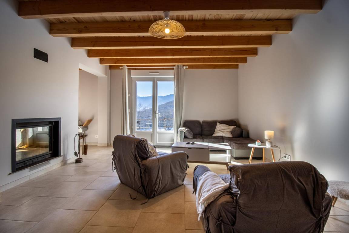 „Gîte très spacieux, avec vue sur les montagnes et tranquille au bout d'une petite route de montagne très difficile d'accès sur les derniers kilomètres où l'on ne peut pas se croiser: Prévoir une voiture avec une bonne motorisation et ne pas avoir le vertige !Bien équipé avec ses deux télés (rare pour être signalé), de la vaisselle en quantité, un grand frigo et une table gigantesque qui peut accueillir 10 personnes. Petit point négatif signalé aux propriétaires: Une seule poêle, 1 (petite!) sauteuse et 2 (petites!) casseroles pour un gîte prévu pour 8 personnes...“