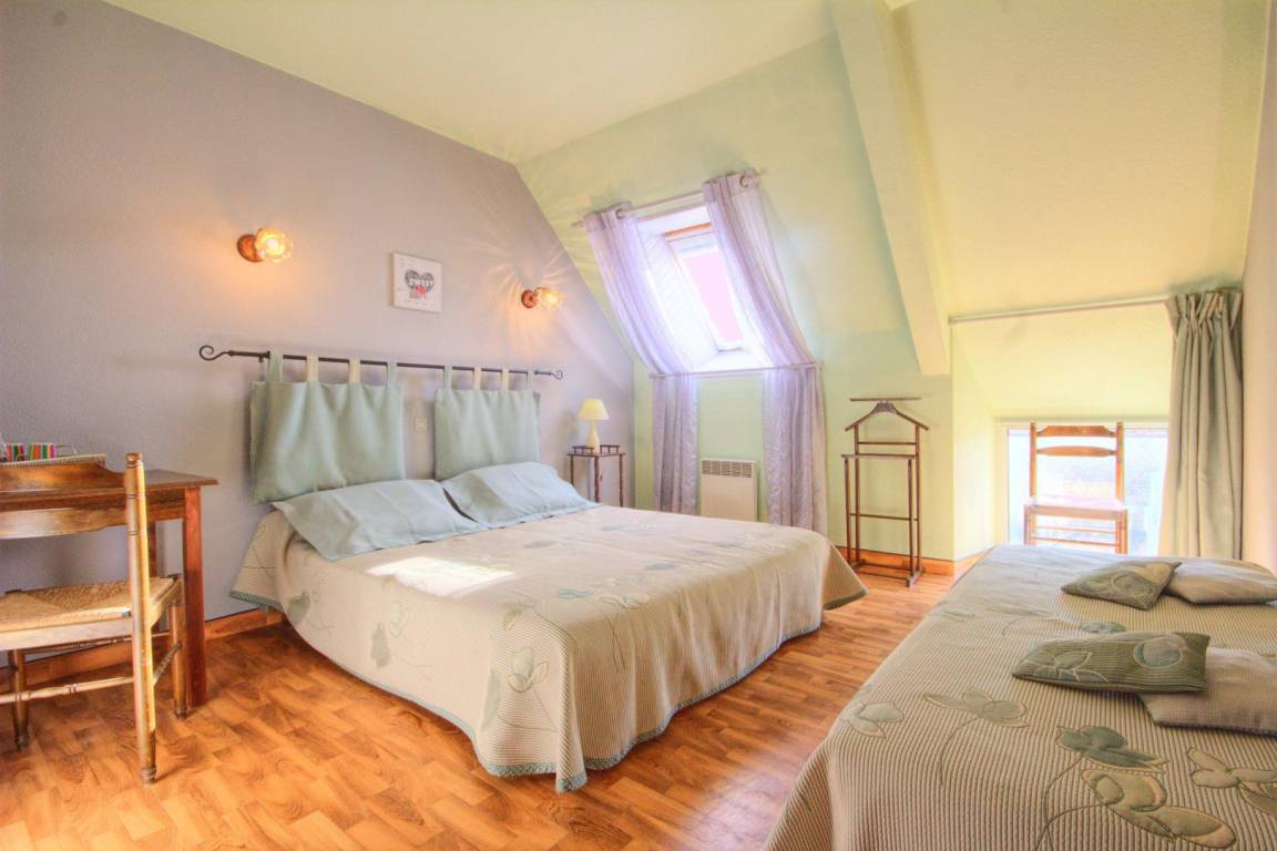 Ihnen stehen auch die Gästezimmer des Eigentümers zur Verfügung. Das Haus bietet Ihnen im Erdgeschoss 1 Schlafzimmer mit einem 140x200-Bett mit eigenem Duschbad/WC und im Obergeschoss 1 Schlafzimmer mit einem 160x200-Bett und einem 90x190-Bett, 1 Schlafzimmer mit einem 160x200-Bett. Duschraum mit Toilette.