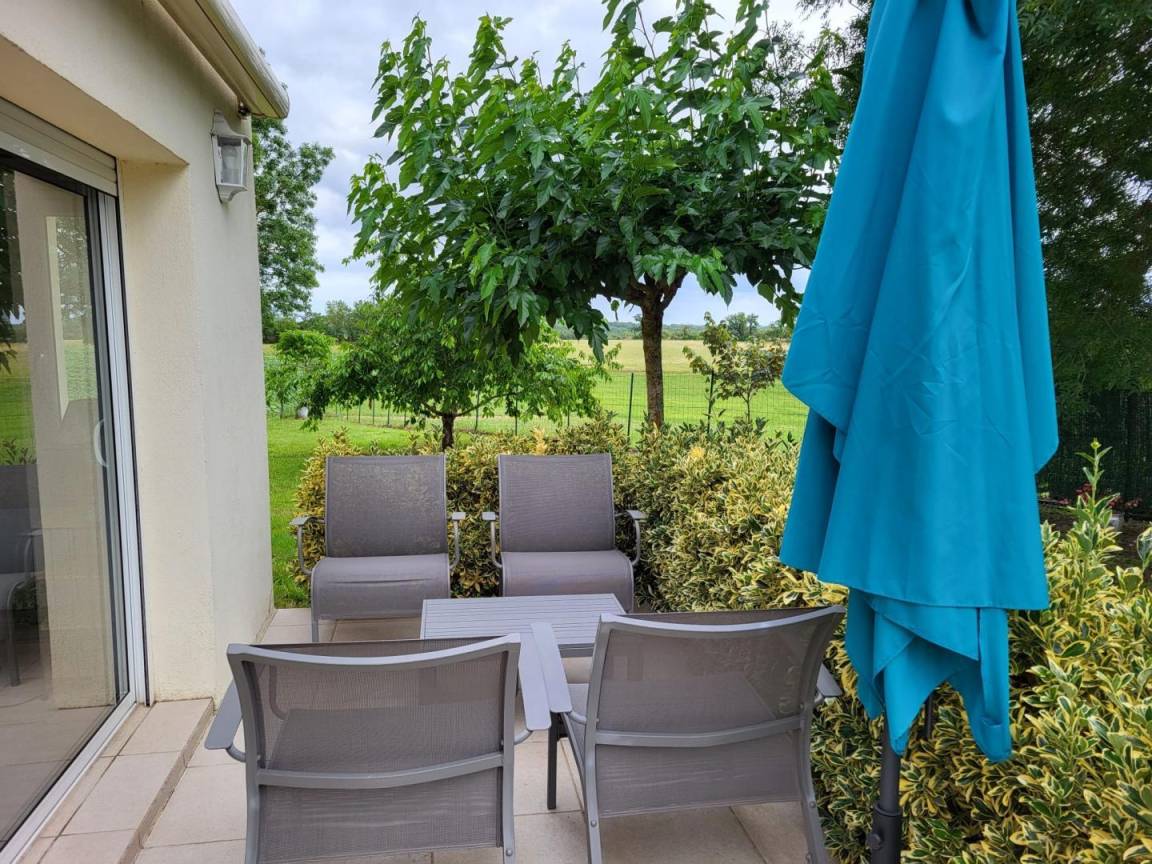 „Après 2 jours catastrophiques passés dans une autre location de la région, Gîtes de France nous a proposé de nous reloger dans La maison de Jade, et nous avons gagné au change au-delà de nos espérances !Chaque pièce est agréable à vivre, meublée avec soin et particulièrement bien équipée. Mention spéciale à la suite parentale, qui contient notamment un vaste lit confortable, un coin salon accueillant, une jolie petite salle de bain et une baie vitrée qui donne sur une terrasse où l'on peut prendre son café devant un paysage dégagé. Malgré la canicule qui a duré plusieurs jours, les nuits sont restées très supportables grâce à la climatisation et au fait que le gîte soit en rez-de-jardin. Jardin par ailleurs spacieux et qui offre divers coins d'ombre à toutes heures de la journée (ainsi qu'un confortable hamac !).Merci à toute la famille qui nous a reçus chaleureusement, s'organisant rapidement alors que notre venue n'était pas prévue, aussi bien pour faire le ménage que pour remplacer dès le lendemain le lave-vaisselle qui était en panne. Merci à tous pour votre gentillesse (notamment les sympathiques grands-parents avec qui nous avons eu d'agréables conversations).“