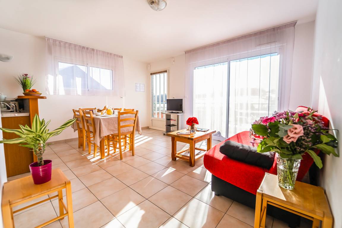 „Logement fonctionnel mais sans aucun charme. Pas de ""coin détente "". Pas de salon de jardin comme annoncé, il y a juste une table en bois avec ses bancs attenants sur la terrasse, comme sur les aires de parking d'autoroute, inconfortable. Le canapé lit du sejour faisant office de coin salon est inconfortable, on n'a aucun plaisir à s'y assoir. Annoncé pour 6 personnes …..à condition de n'y être que pour dormir sans confort et manger. logement trop cher pour les prestations offertes.“