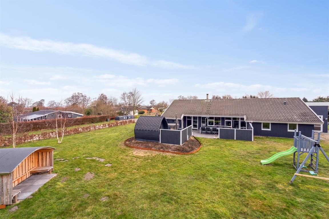DraußenDie Ferienunterkunft liegt auf einem 1500 m² großen Gartengrundstück. Die Entfernung zum Meer beträgt 250 m. Es gibt einen Badesteg in der Nähe. Die nächste Einkaufsmöglichkeit liegt 4000 m entfernt. In einem Abstand von 8000 m gibt es einen Golfplatz. Es steht ein offenes Terrassenareal zur Verfügung. Geräteraum. Schaukel. Spielturm. Rutsche. Außensauna. Außendusche. Es steht ein Grill zur Verfügung. Es ist ein Ladestecker für Elektroautos installiert. Ladestecker Typ 2. Mit einer Ladeleistung von 11 kW. Parkplatz auf dem Grundstück.