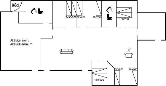SchlafverhältnisseDie Schlafplätze verteilen sich auf 5 Schlafräume. 4 Schlafplätze in Doppelbetten. 6 Schlafplätze in Einzelbetten. Ferner steht ein Kinderbett zur Verfügung.