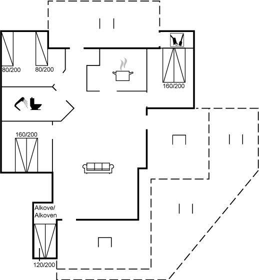 SchlafverhältnisseDie Schlafplätze verteilen sich auf 3 Schlafräume. 4 Schlafplätze in Doppelbetten. 2 Schlafplätze in Einzelbetten.2 Schlafplätze im Alkoven. Ferner steht ein Kinderbett zur Verfügung.