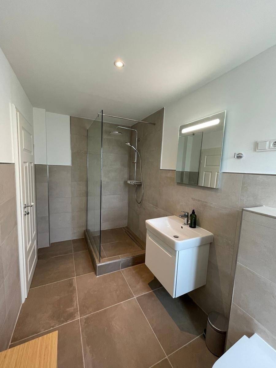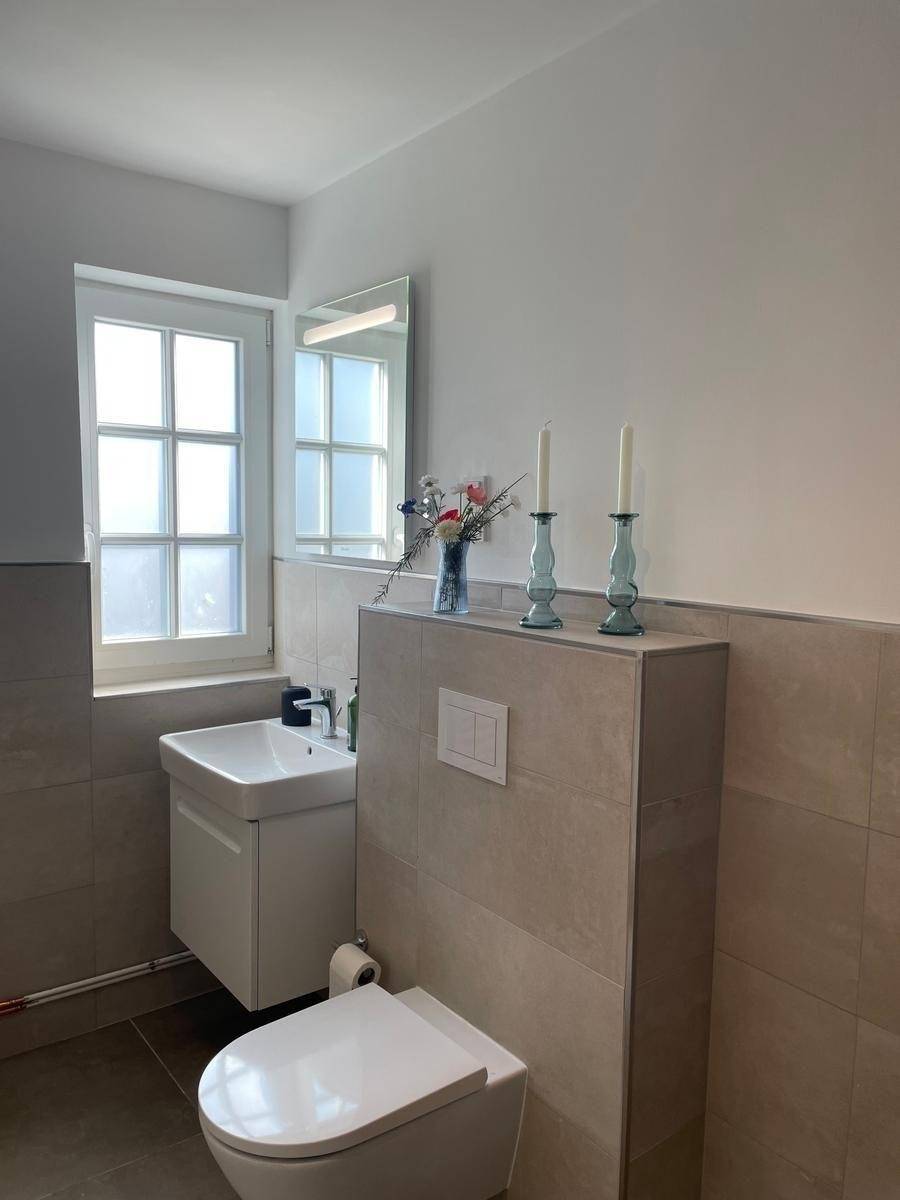 Im Erdgeschoss befindet sich ein Schlafzimmer mit einem eigenen Badezimmer. Außerdem gibt es neben der Küche noch ein weiteres Badezimmer