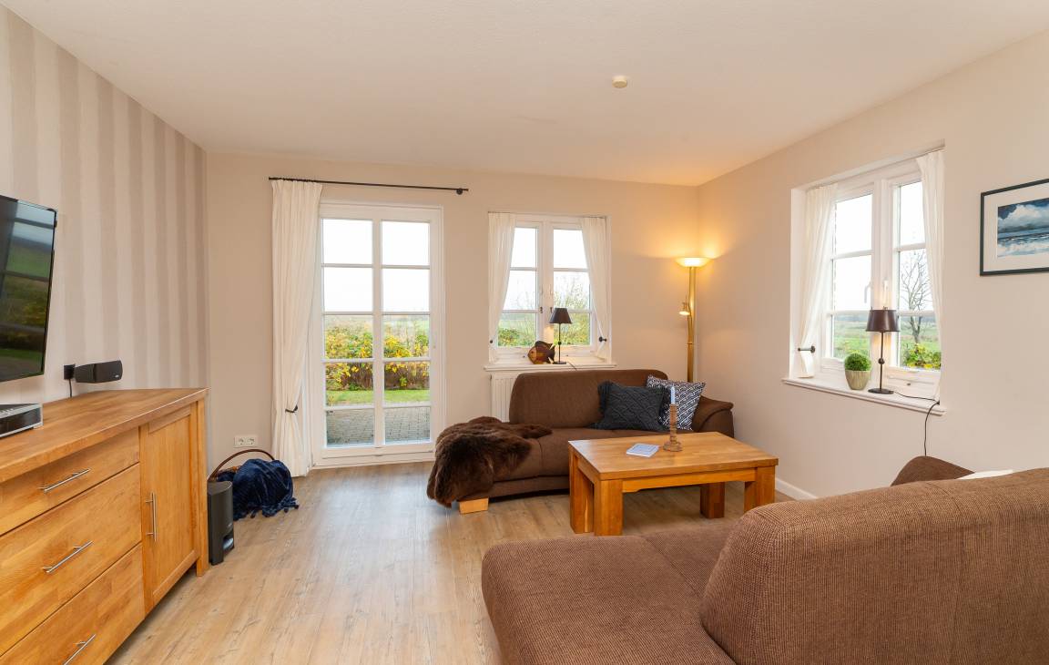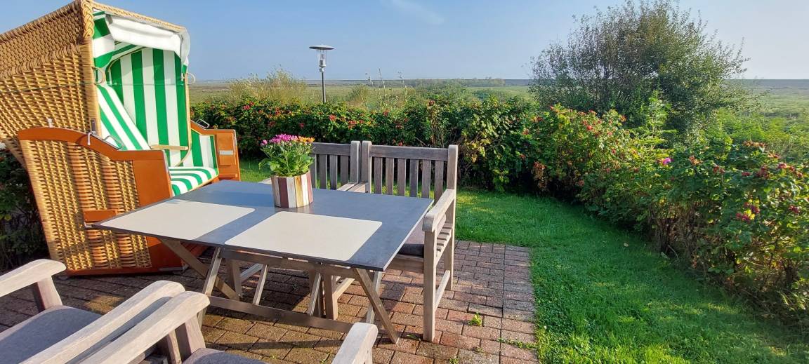 Ob als Familie, alleine oder zu zweit - die Ferienwohnung Lachmöwe bietet allen Urlaubern das herrlichste Zuhause auf Zeit an. Aus der gesamten Wohnung heraus genießen Sie einmalig schönen Meerblick über die Norddorfer Salzwiesen, hinüber zur Nachbarinsel Föhr und Sylt.